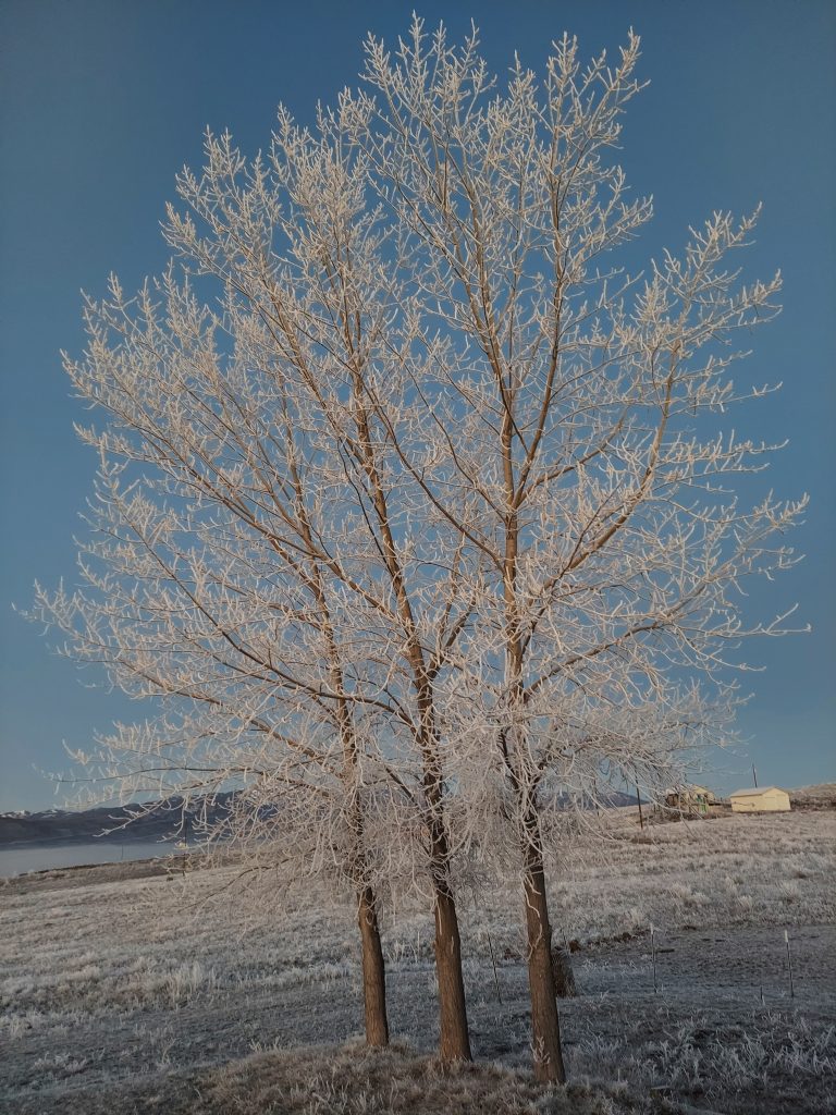 It was foggy again this morning. And cold enough that the fog left everything covered in a delicate white frost that lasted until lunchtime when the sun came out and melted everything. I enjoyed it while it lasted.
