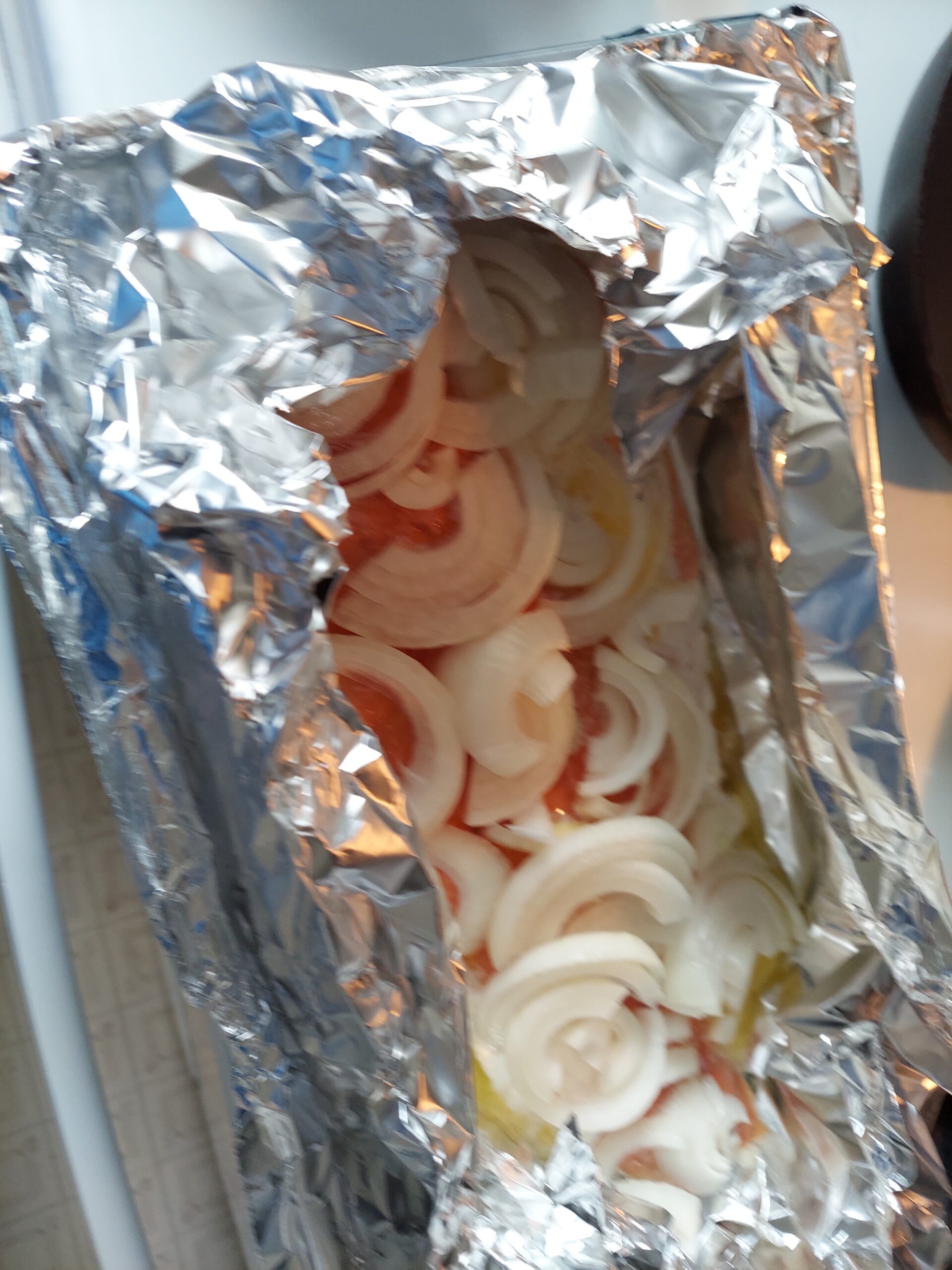 I wasn’t sure I’d be able to cook it in time for lunch, but I got it done. My dad advised slicing up an onion and putting that on top of the salmon in a little foil basket. The onion didn’t cook as much as I prefer, but I found myself enjoying the slices anyway. I’ve finally grown to like onions, ha.