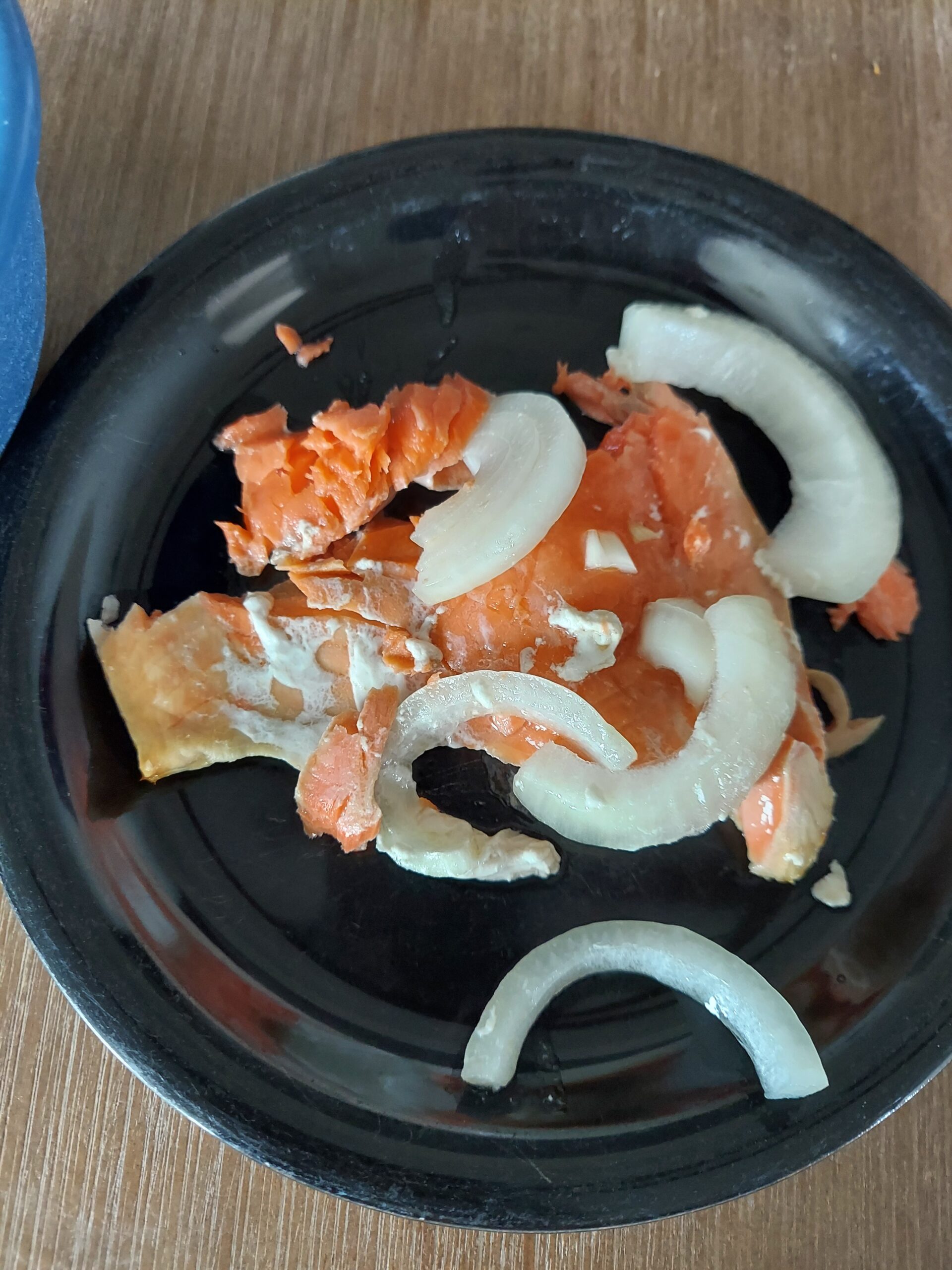After work, I got right to eating. I had salmon, onions, and an orange. I ate at the table. Ambrose preferred that I eat meals at the table. It makes sense to me – we finally, after more than a decade of living in a studio apartment, had a table to eat at, so we may as well be civilized and use it. I’d been eating most meals on the couch since his death, except when I ate meals during a family zoom.