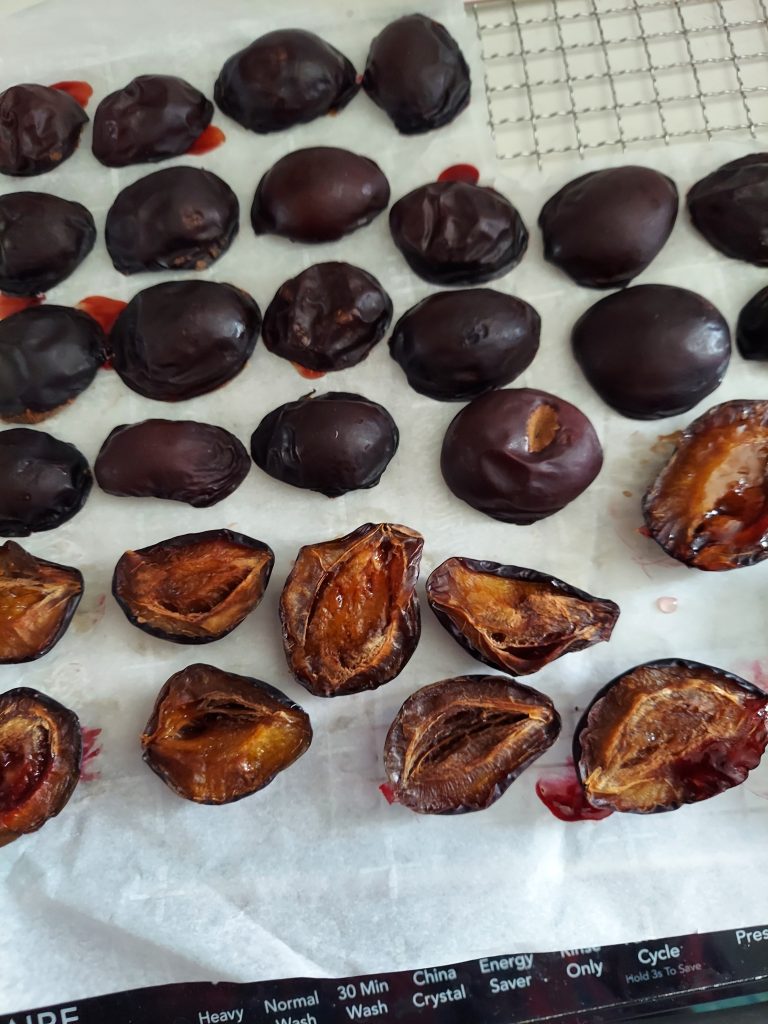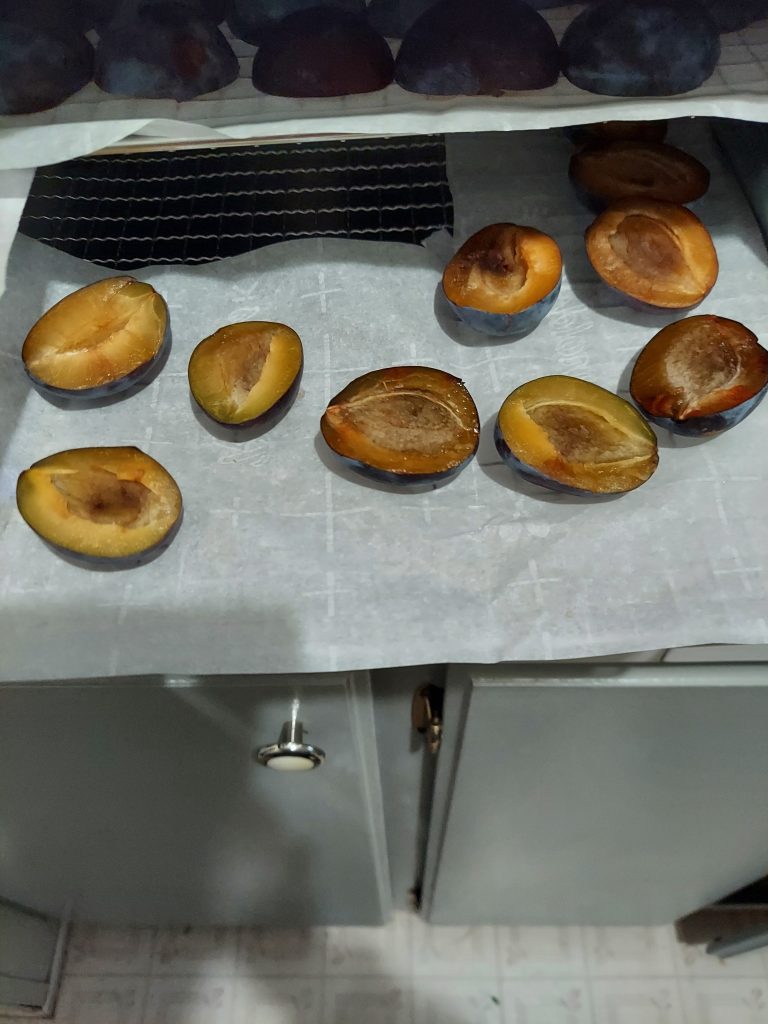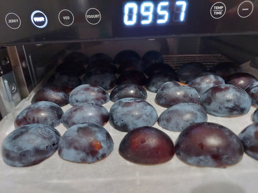 The plums that I’d gotten from my neighbor were getting soft at an alarming rate, so I hauled out my dehydrator. I chopped them in halves and got them to work. From what I’d read online about these, I could expect ten to fifteen hours at 140 degrees, so it’s been running all day. I’ll let it shut off before I go to bed and might restart it in the morning if the fruit doesn’t seem sufficiently dry. I’m also going to reach out to my neighbor tomorrow and ask if I can get some more since I now have a way to preserve them. I’ll also offer him some dried ones. I don’t know if he has a dehydrator himself. I know he does canning.