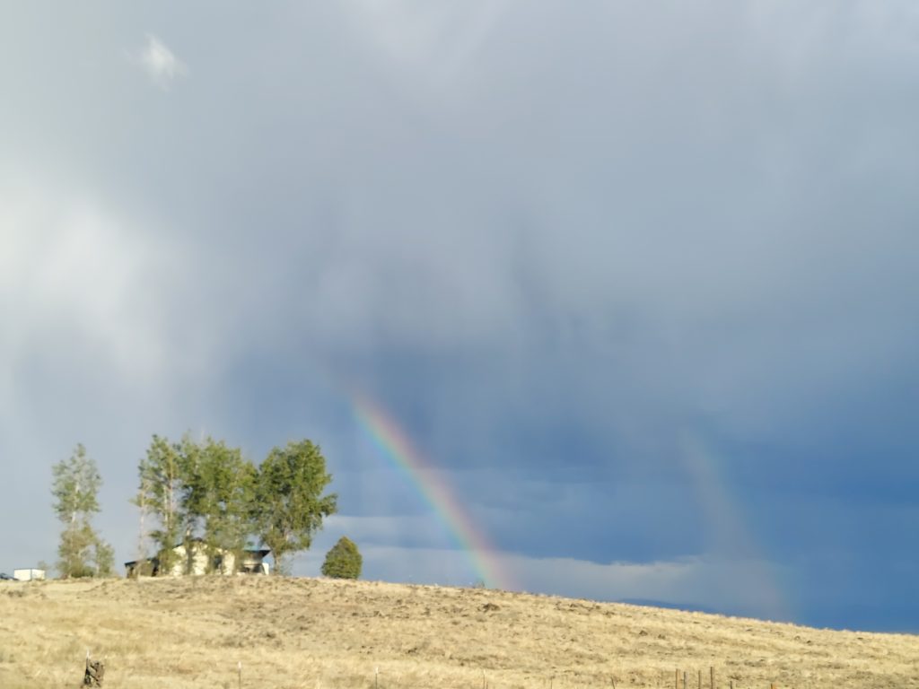 Rainbows like that are part of why I love living out here. I love being in a place where I can look around see the sky in every direction. There are no tall buildings to block my view, and at night, no streetlights to impede my view of the stars. Only clouds and the light of the moon do that. I’m here because I need to see this beauty, and know that Ambrose and I chose this place for a reason.