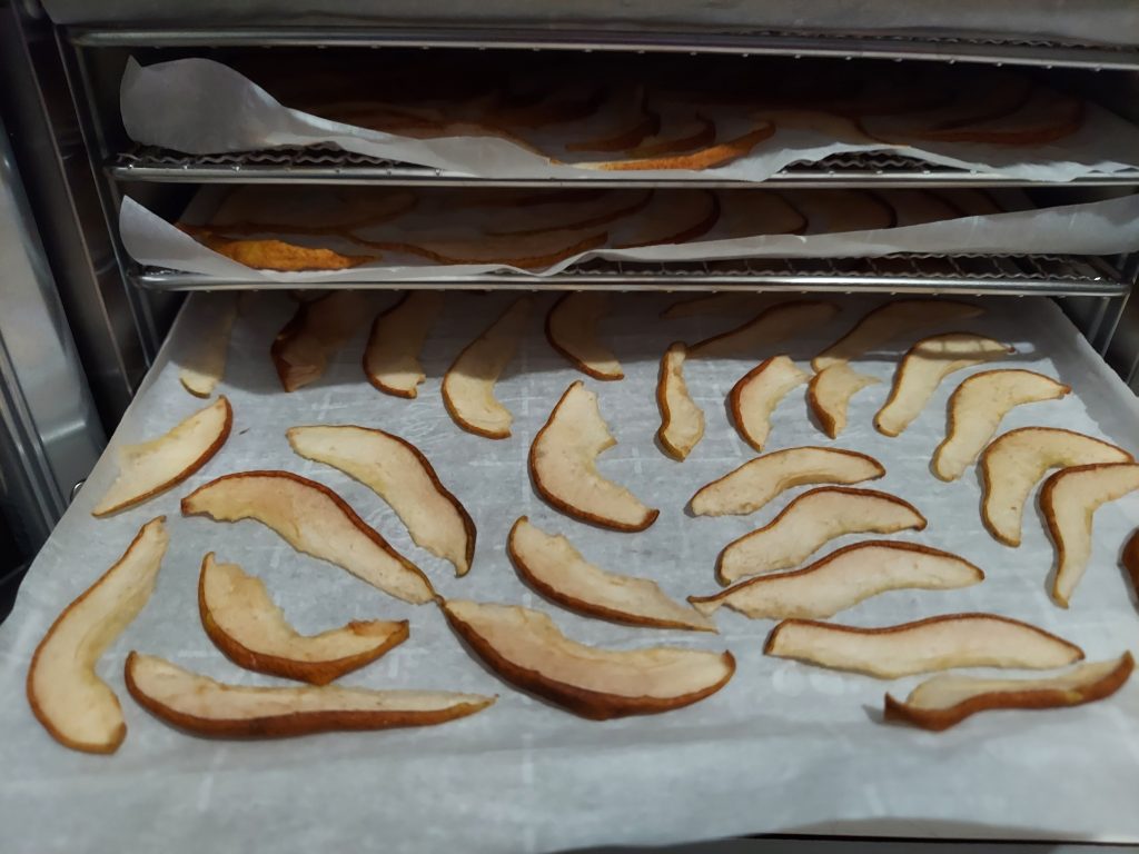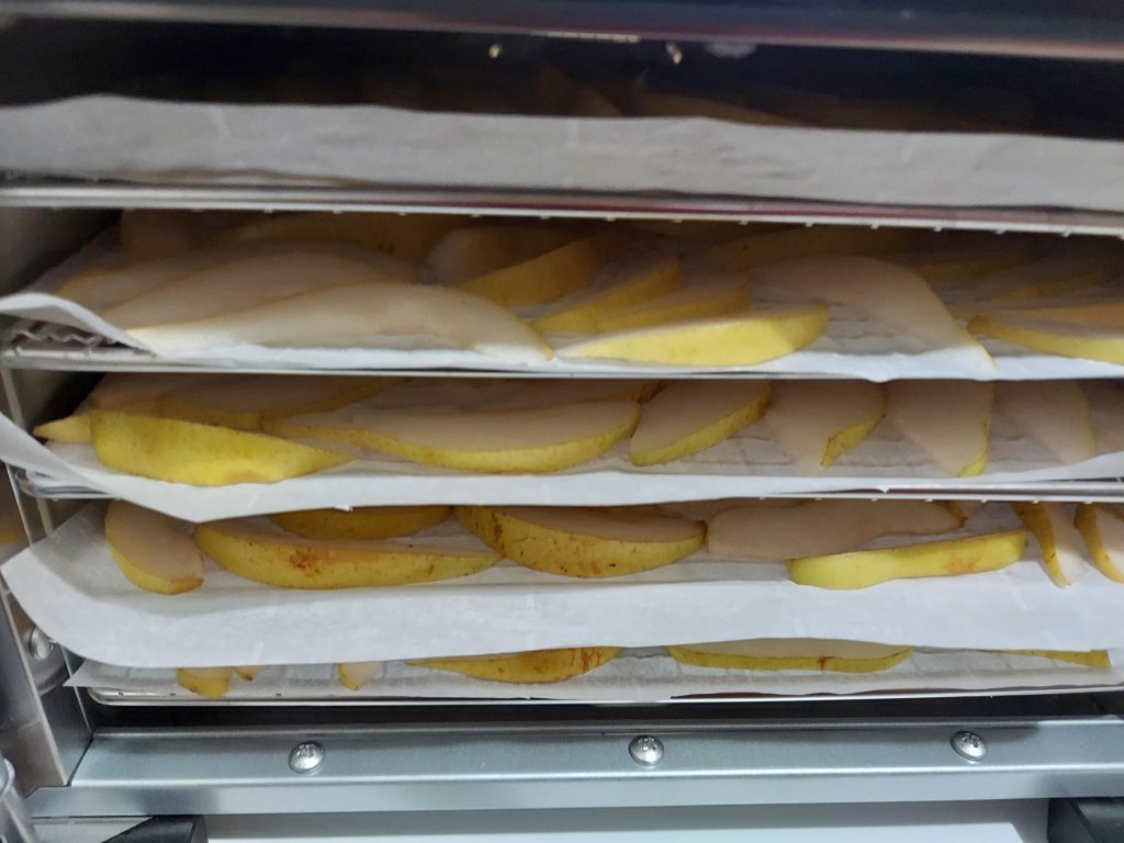 I guess it’s good that I woke up relatively on time without an alarm, but I feel like I could have slept a lot more. I did a half mile walk, my calisthenics, and a shower. Then I cut up a bunch of pears so I could start them in the dehydrator. I tried to cut them thin, but some of them were thicker.