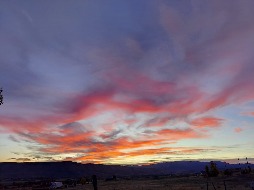The sky was beautiful today. Especially at sunset when I was driving home from the hot springs. I had to force myself to look at the road and not the sky, where the clouds were being painted orange and pink.