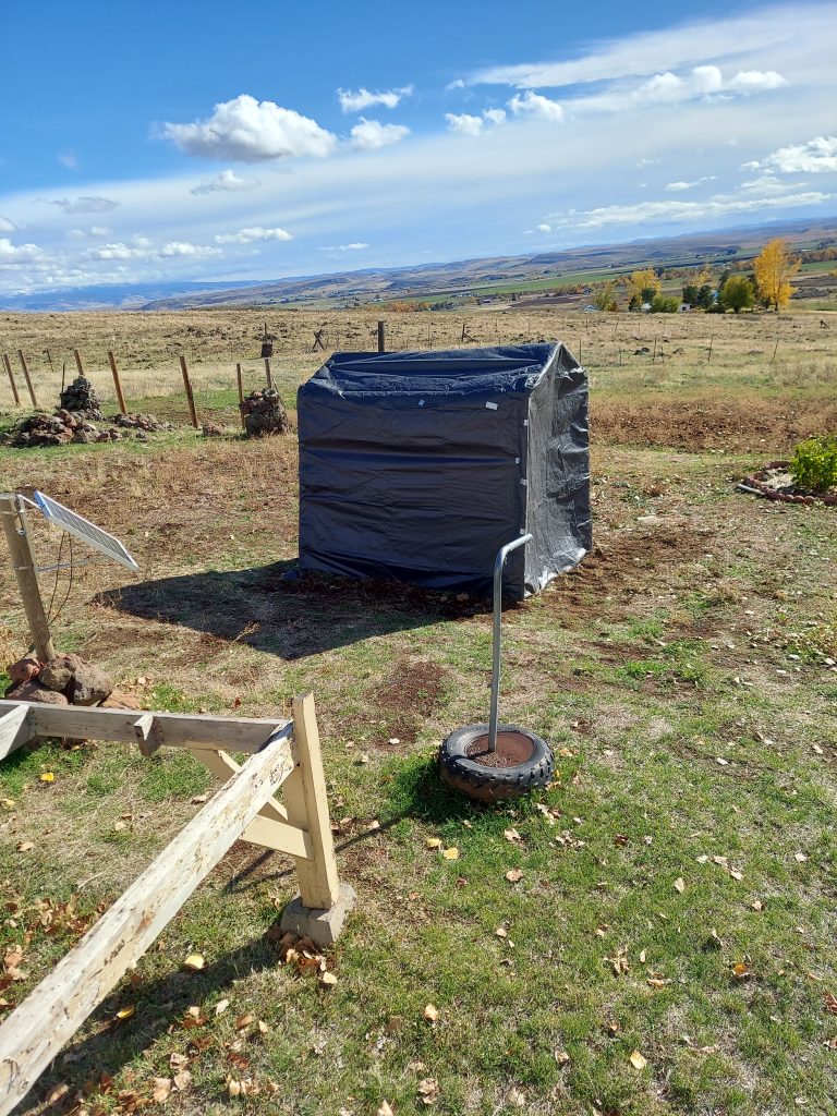 We did try this with the garage, sort of. We weighted the edges of the walls down with rocks, but because it was so difficult to dig on that area, we weren’t able to bury them. And no matter how many rocks I piled up, the wind was able to pull those edges up. I’m hopeful the burial will help, but if it doesn’t, then I will figure out another tactic. Maybe more dirt piled on the side…