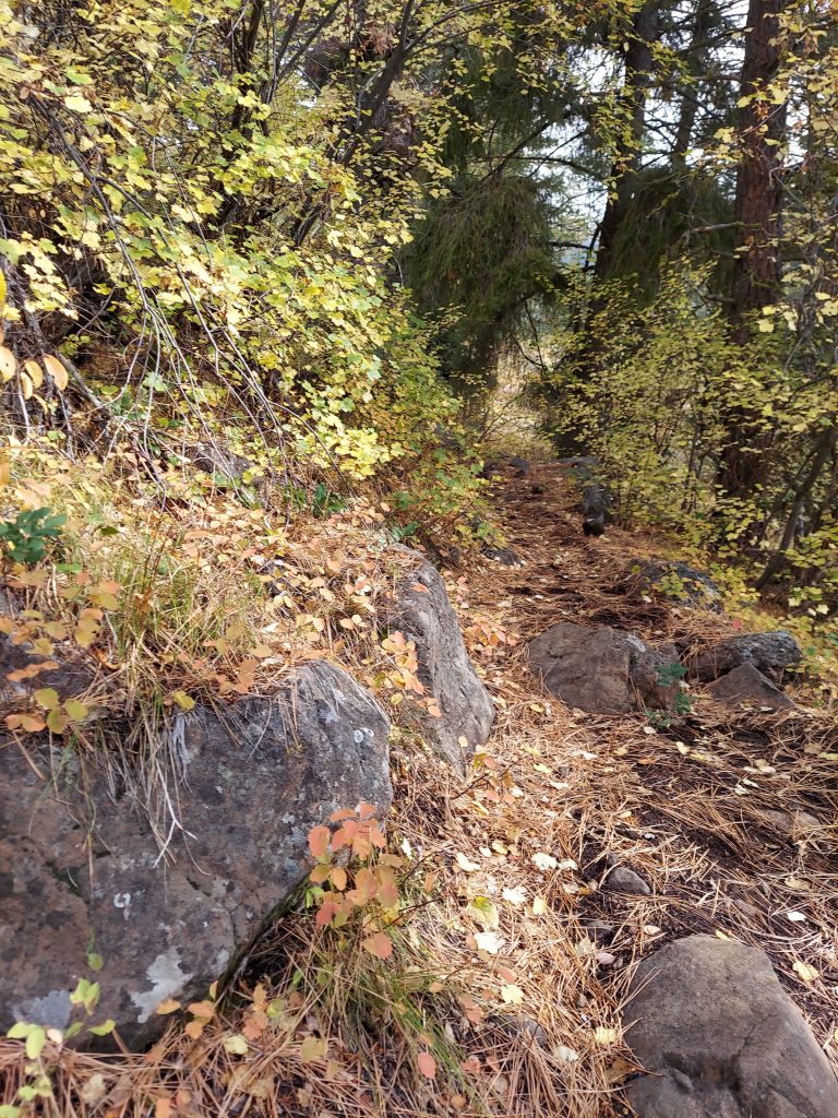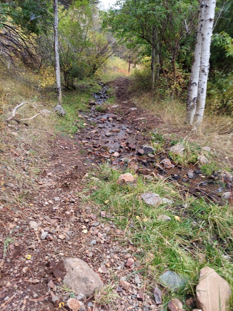 There were a few horse trailers parked at the trailhead, but no people in sight. I did my warm-ups and then headed up the trail. My body felt a lot better than the last time I’d been up that way. It seemed like my calves had been on fire whenever I did even the incline from the mailbox, let alone a climb like this. Today, I could feel them working, but it was just exercise, not strain.