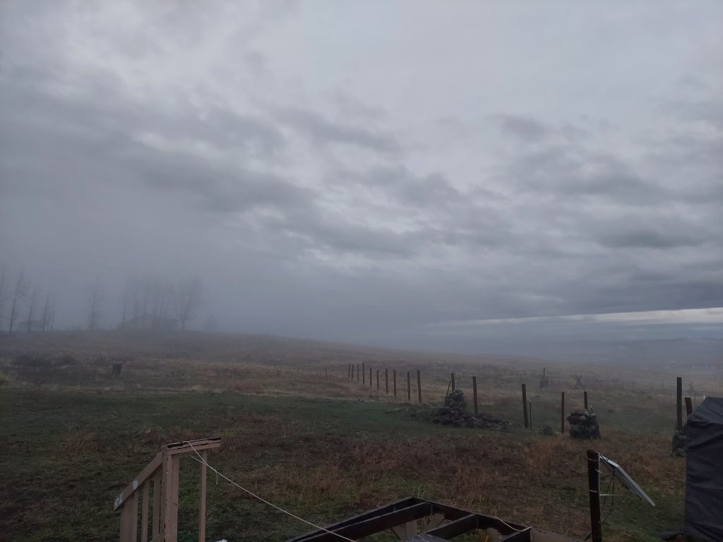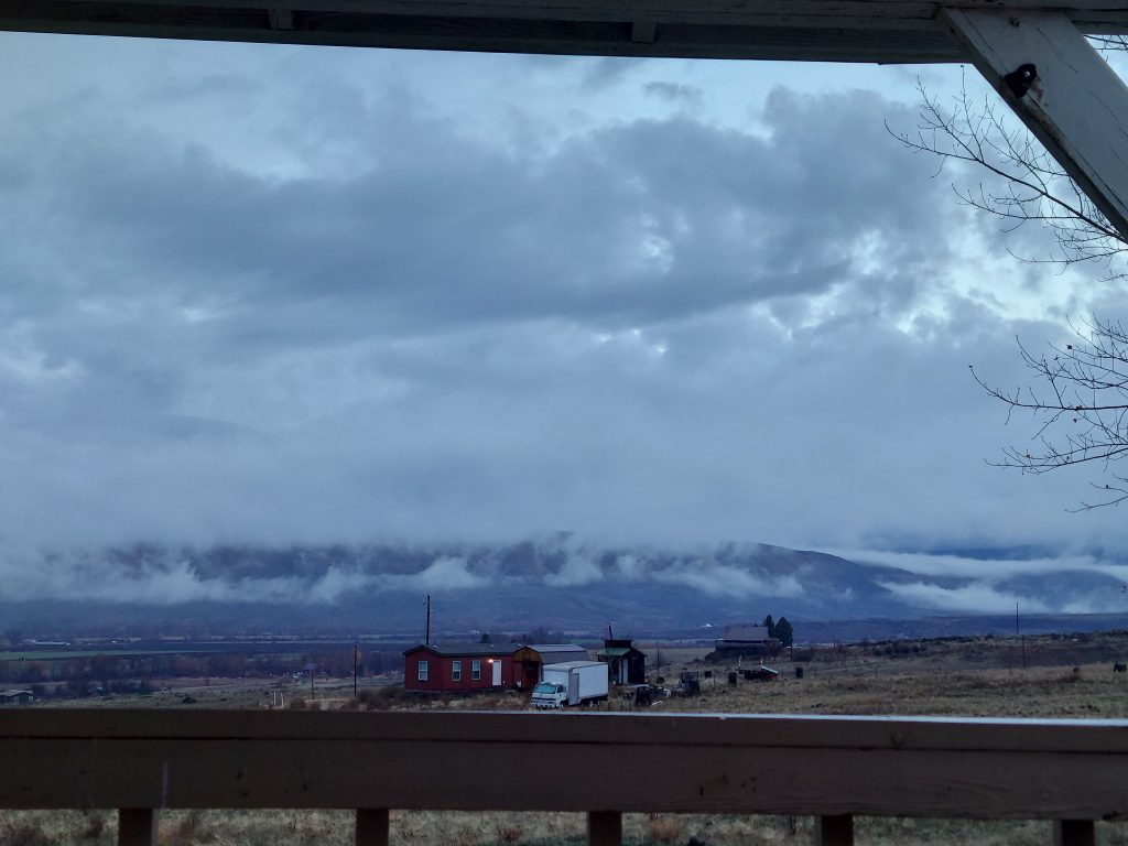 The morning was misty. The clouds cleared throughout the day. I got a beautiful shot of the mountains windowed in the clouds.