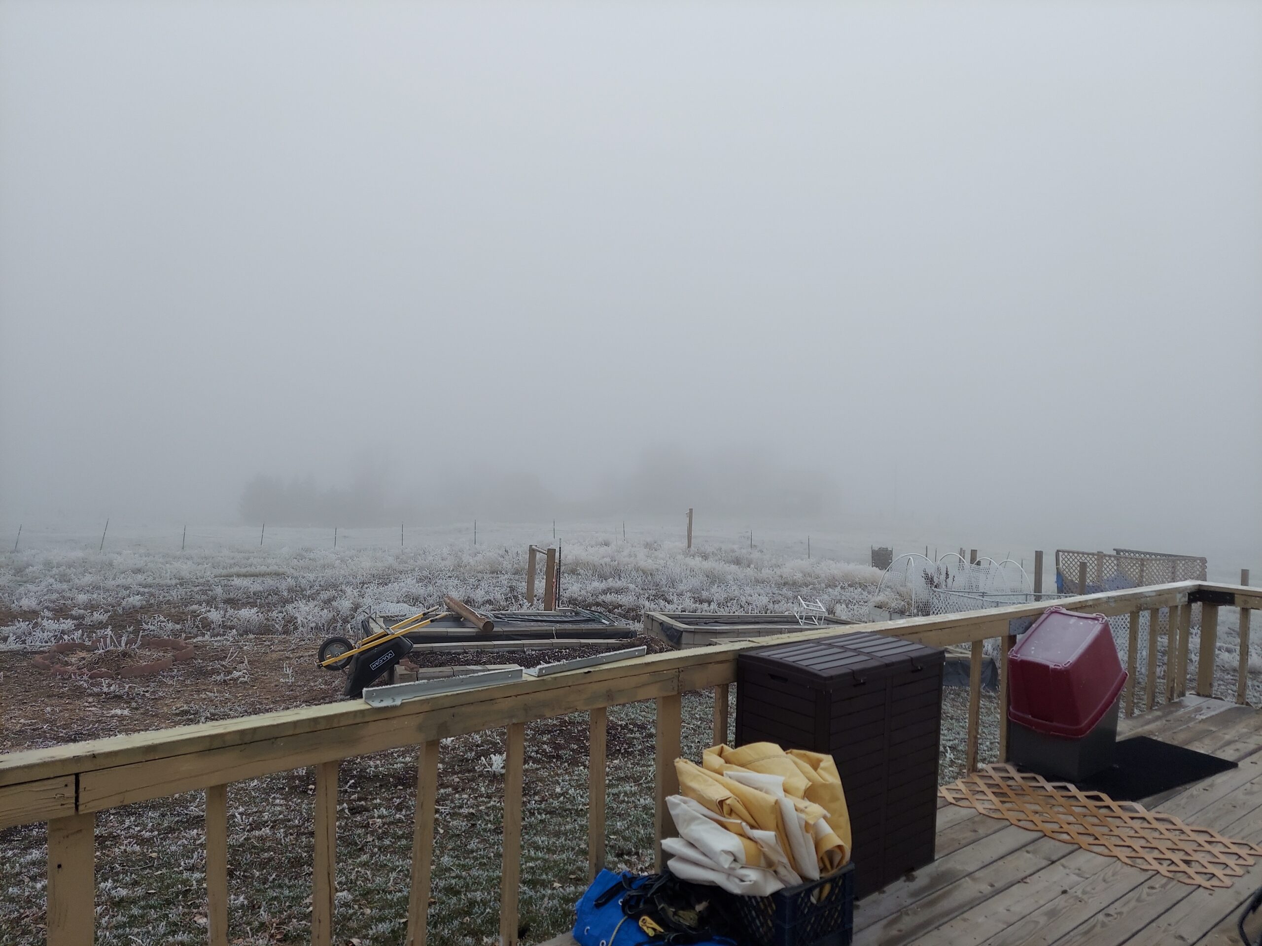 Then, after work, a neighbor gave me a ride to the library and the grocery store, stopping for gas for his vehicle as well. It was really cool to see how the fog looked from a car. Visibility is okay if you’re going a nice 25 miles per hour; I wouldn’t want to be trying to go 65 on the highway in it.