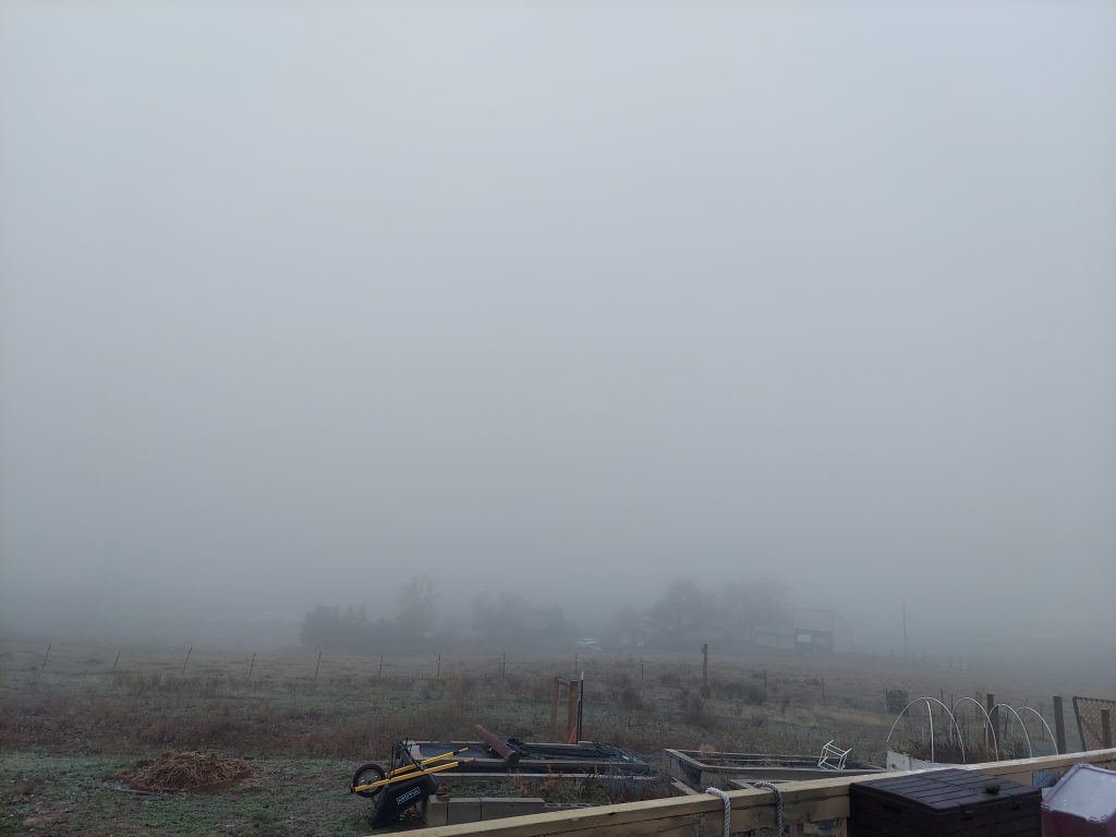 I woke before the alarm, but I didn’t get up until it rang. I did get a mile walk done in the morning. It’s been smelling like a wet cigar outside lately. I’m not sure why. There was some fog to walk through, but I couldn’t really tell how foggy it was until later in the morning when it got light out.