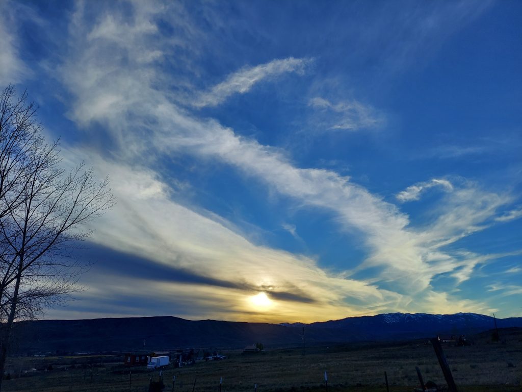 I’ve been feeling kind of cheerful today. The morning sky was star filled. The evening sky full of soft clouds. I really need to vacuum in my office, but that means picking up my office and I haven’t gotten myself motivated for that quite yet. But I’m getting closer to motivation after I found a bug crawling on my shirt while I worked.
