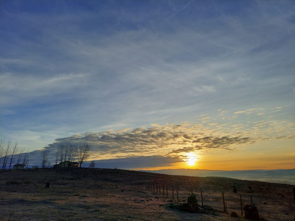 There was still enough moonlight to walk by, though I did turn my headlamp on briefly when there was a car approaching. Best that they can see me well. I like seeing the little stream at the bottom of the hill silvered by moonlight.