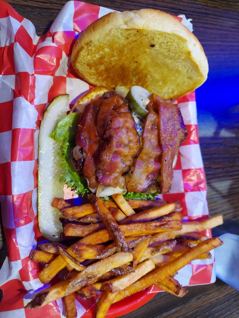 After donating, I drank a juice box and ate a homemade cookie while chatting with another donor. Then I went to Dad’s in Council to get myself a nice post-donation meal. I had the Holy Cow burger, which had jalapenos and pepper jack cheese and BACON, along with fries and water to drink. The burger was excellent. I didn’t finish the bun or the fries, but I ate all that meat and the veggies. I’d go there again. They even had a selection of NA beer, but I decided not to indulge this time.