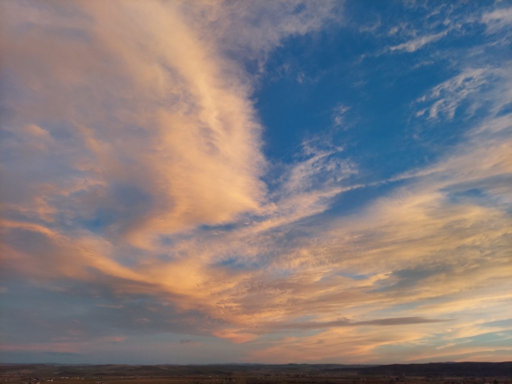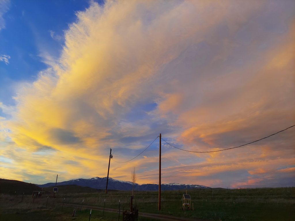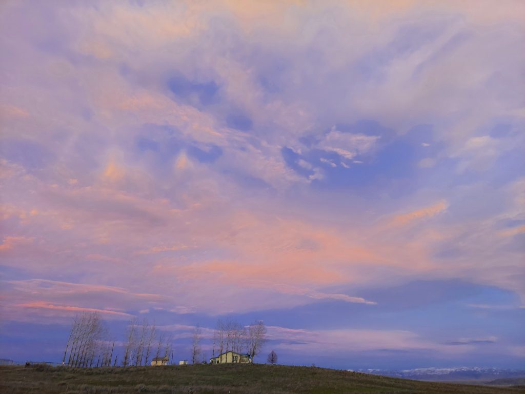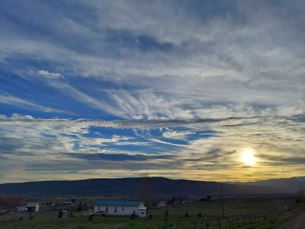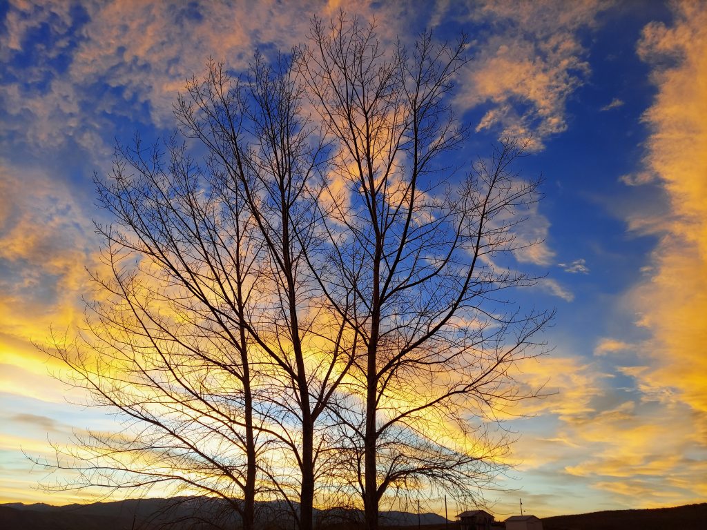 The sunset this evening was spectacular. The sky went gold in the west, shading to orange and pink overhead. Just the kind of beauty that makes me love where I live, that I get to see this. Feel the beauty of this light. It’s getting to be the season where I’ll be going to sleep before the sun sets, so I’ve got to enjoy it while I can.