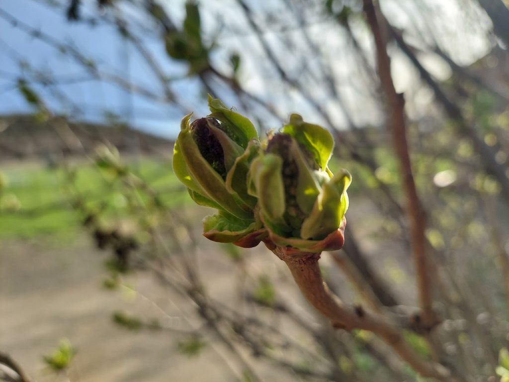 I did look at the lilacs at the hot springs, and I now know what the flower buds look like as they start to come out. I have definitely not seen flower buds on my lilac yet, but I know what to look for. The hot springs flowers tend to pop a bit before mine do up on the hill, so there’s still a little hope that I might get some blossoms this year.