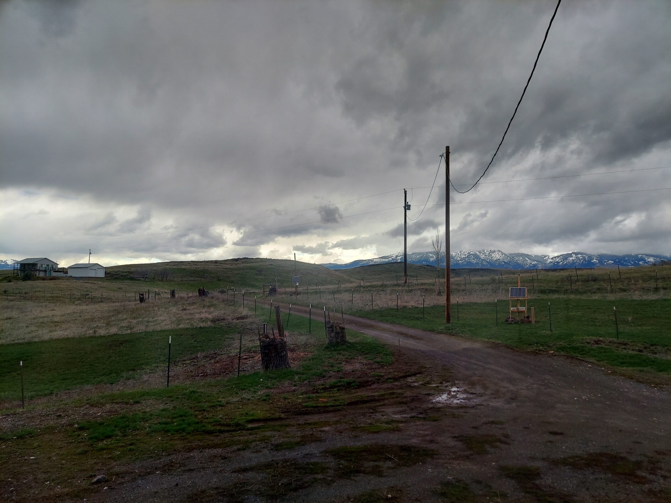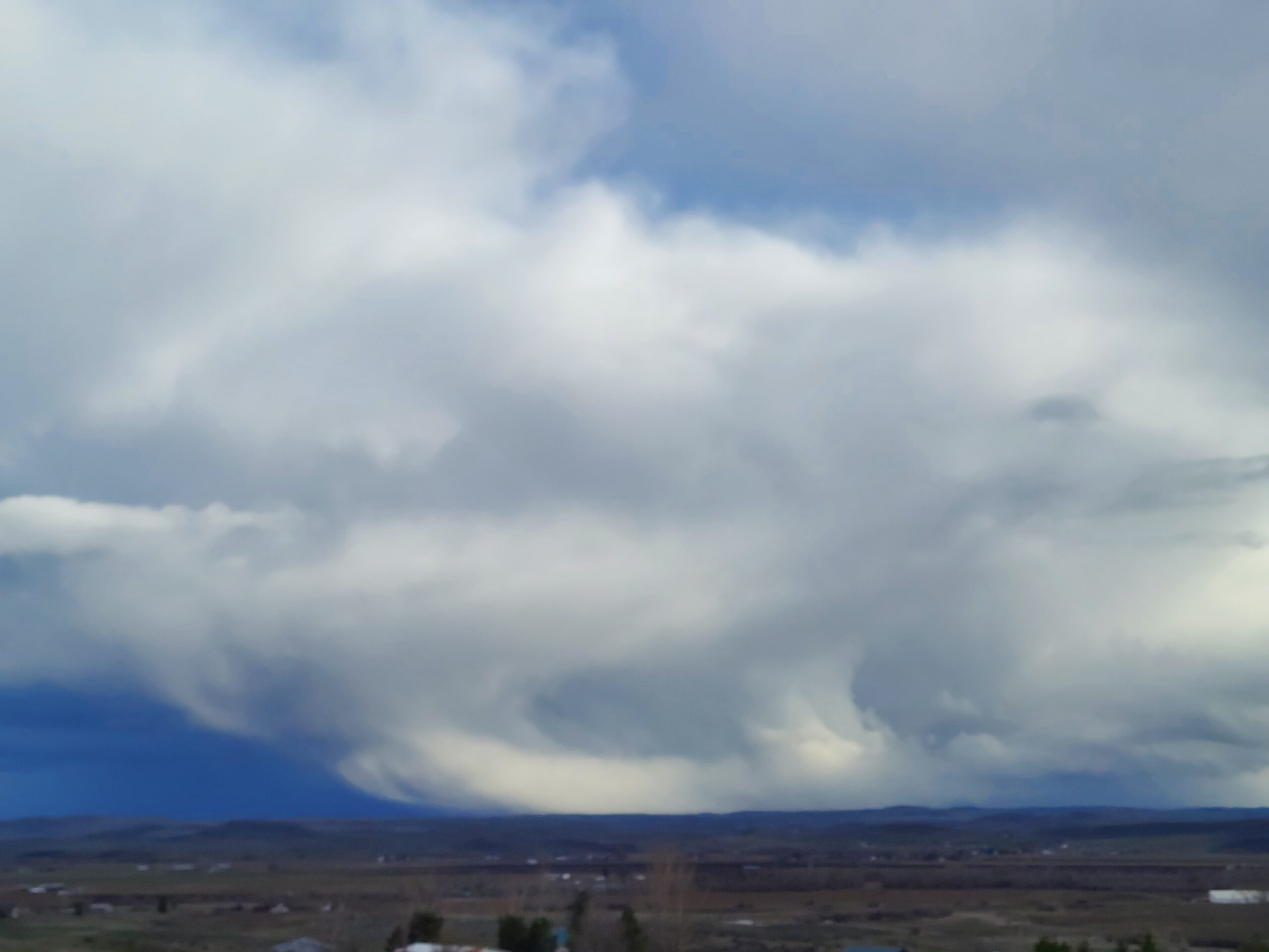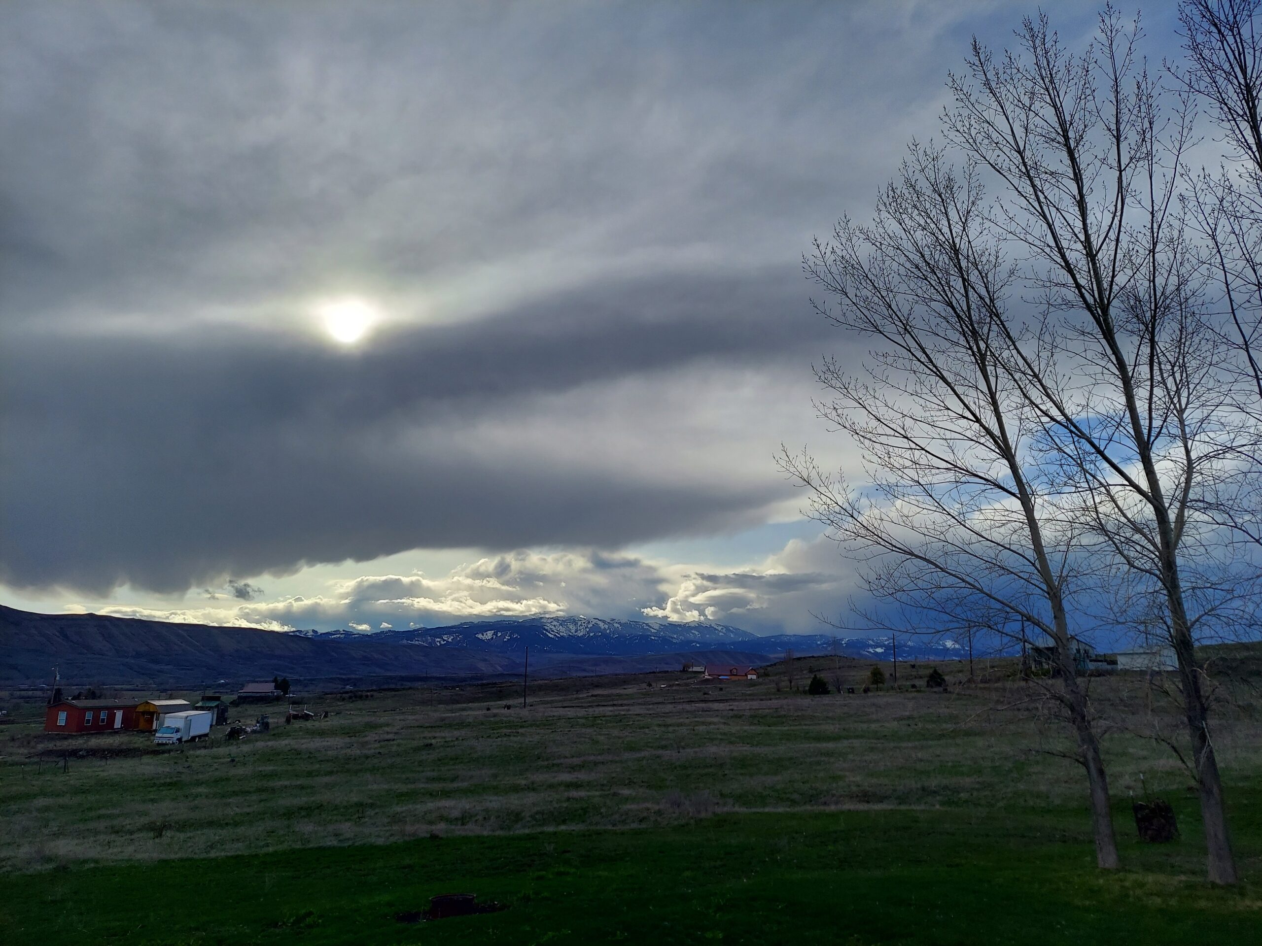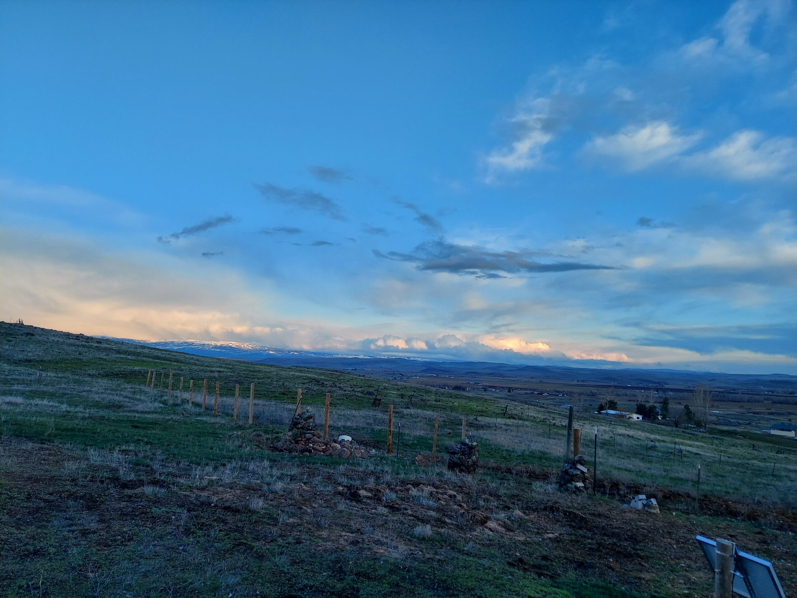 The weather has been beautiful today. Gray and cloudy to start, with storm cells bringing rain and wind and even hail, but in the evening the sky got more clear. The clouds made a painting in the sky.