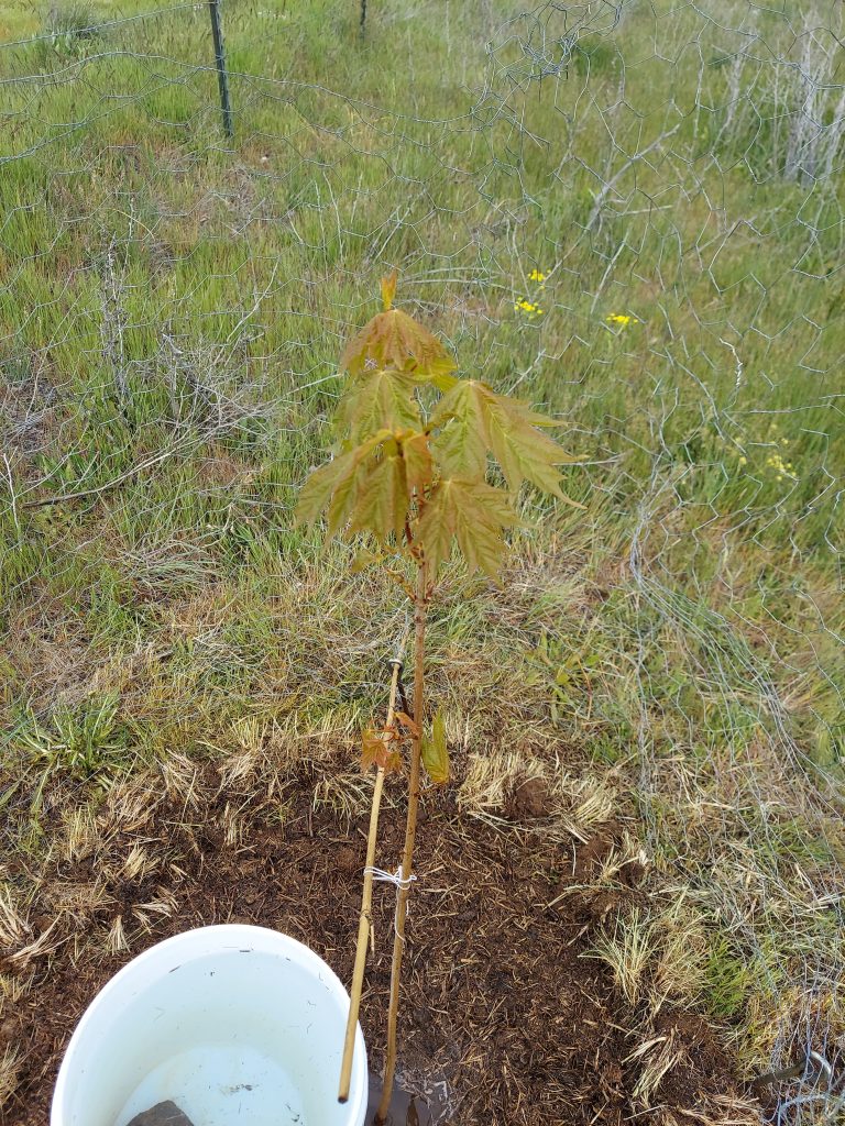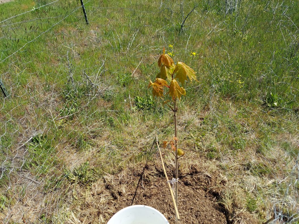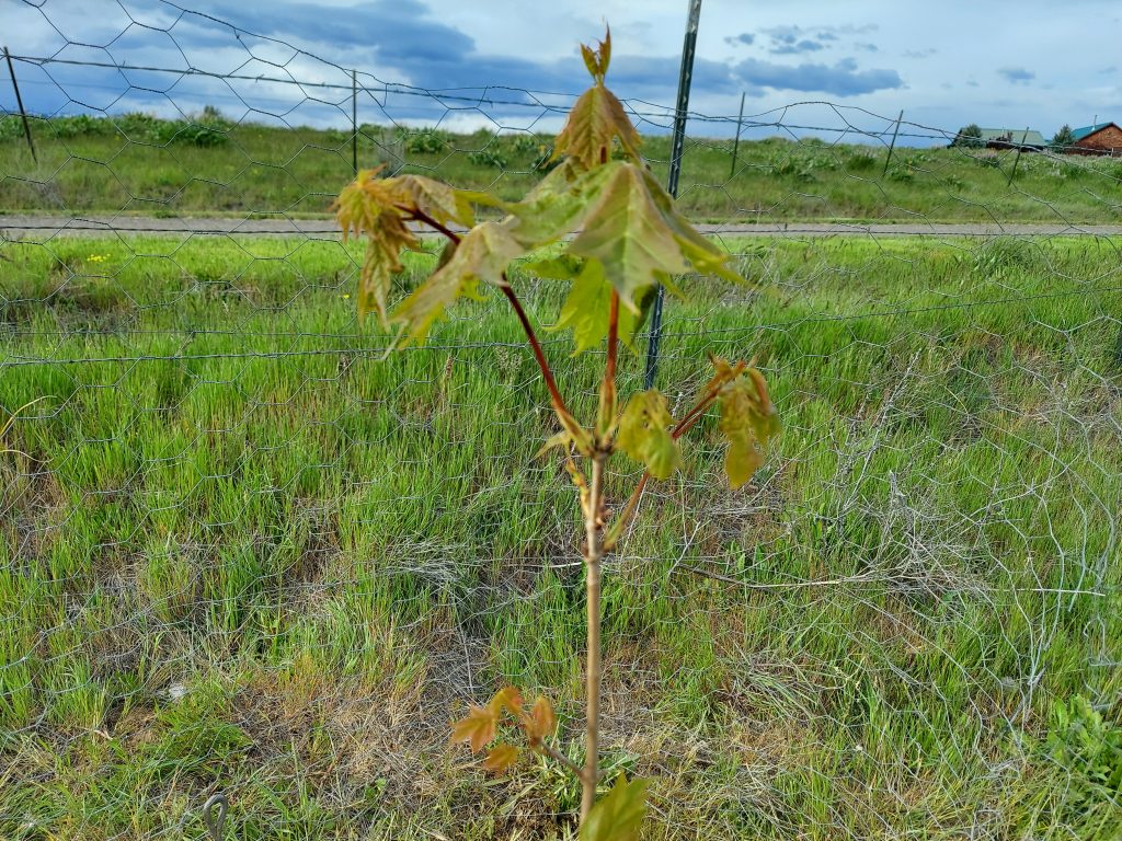 There’s a storm rolling in. It’s supposed to rain all day tomorrow, so I will likely skip watering my tree. Though I will pay attention to how much it rains. If all we get is a few sprinkles, I’ll still water the tree. I’m really happy to see the leaves spreading out, and I hope it’s a sign that she’s happy to be here. I did take a look outside, and she’s swaying in the wind, but not too far with the stake for bracing.