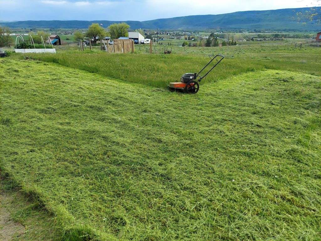 It was such a relief to mow without once having to worry about the trimmer cords. They just worked. They didn’t fly out, they didn’t snap, they just worked. And they worked hard, because the grasses are growing thick in this lovely spring. I made a start with some of the easier sections.
