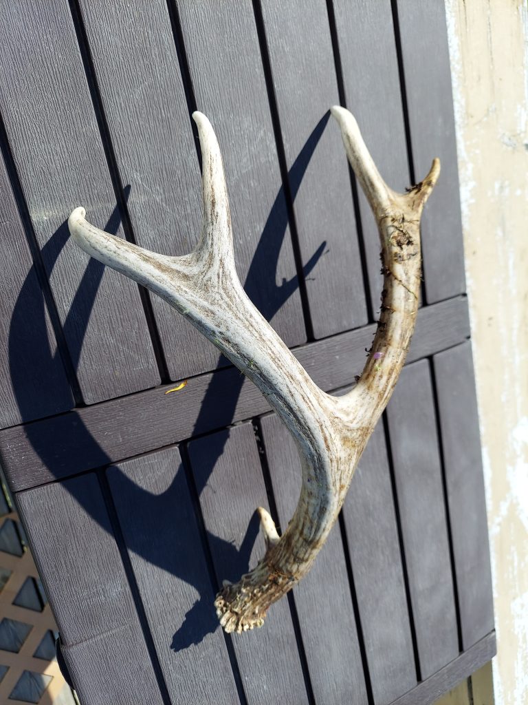 I started my first mowing session before 10 am. While I was mowing near the raised beds, I found a shed antler. The mower ran for a little under an hour on the tank I’d filled. I parked the mower in the shade to let it cool and set myself a 30 minute timer to take a break. I had a glass of water out on the porch and then played some video games. The next session was about the same length, but my ear protection was starting to really hurt.
