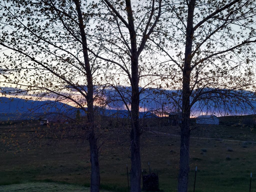 The third mowing session was about 75 minutes. The mower runs longer if it’s warmer outside, and despite the lack of sun it was warmer in the afternoon than it was in the morning. It was about 3 pm when I finished, and I decided not to go for a fourth round today. I still had to prep breakfast and figure out dinner. And clean. I did water my tree before I went inside for the day.