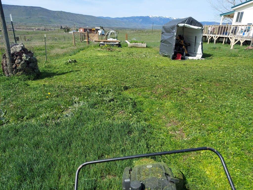 I mowed until I ran out of gas, starting with the area around the lilac and then moving out from there. The difference in experience with the new quick lock trim head is incredible. No more stopping every ten to fifteen minutes (if I was lucky they’d last that long) to jam the string into the holes. I didn’t even need to change the strings that I’d put on once. It just worked.