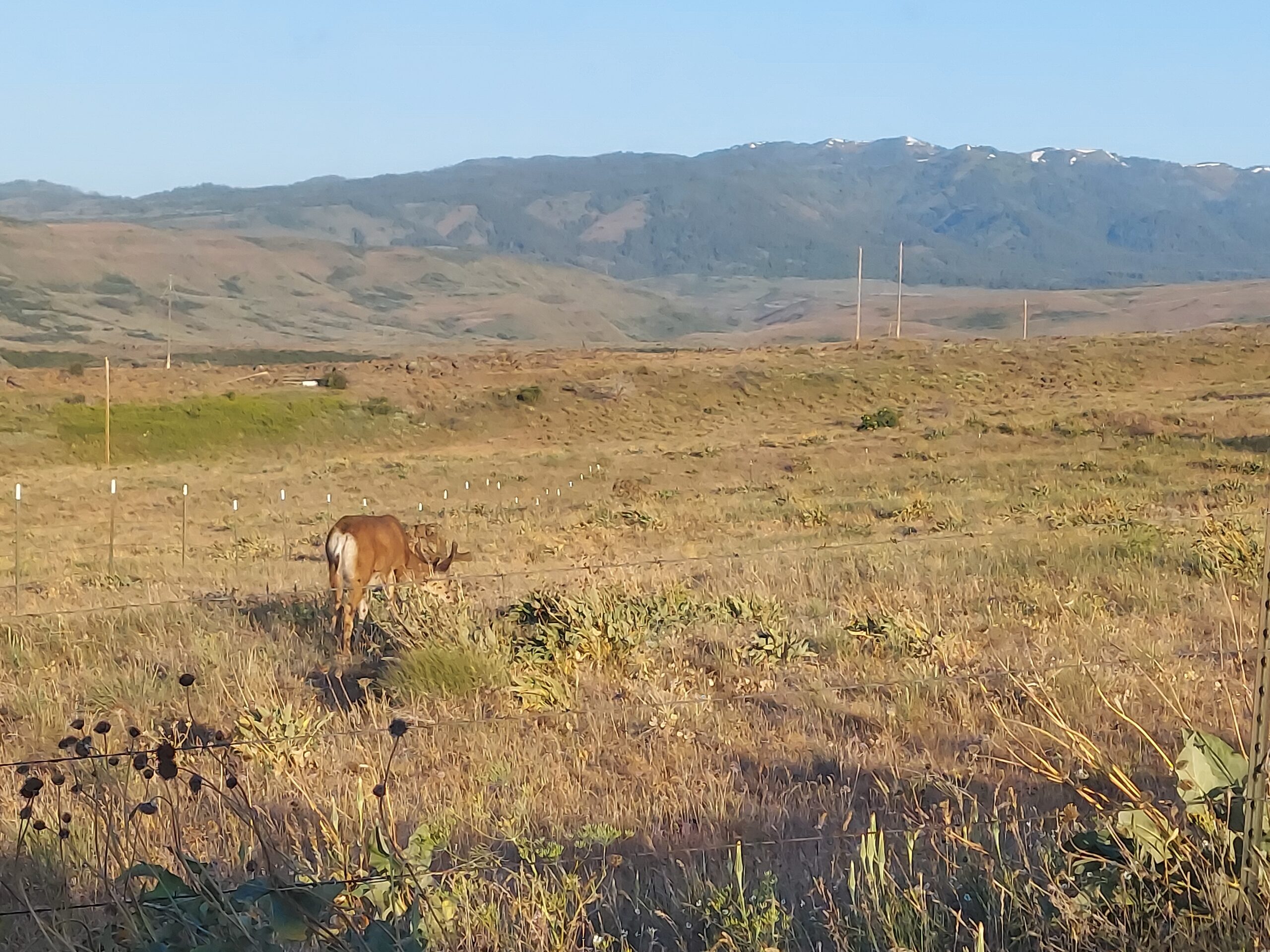 I had a hard time getting out of bed this morning. I could have gone outside and done some hoeing, or I could have done some exercises, but instead I malingered in bed. But I did get up by 6:30 so I could eat an early breakfast and then go shopping so I’d have breakfast sandwiches for tomorrow morning. I saw a pair of bucks as I drove down.