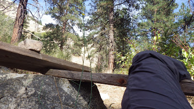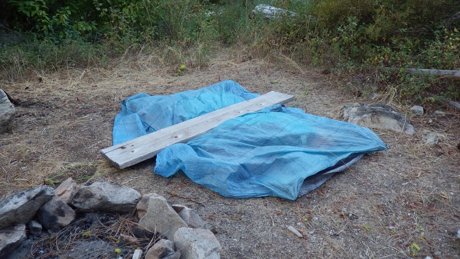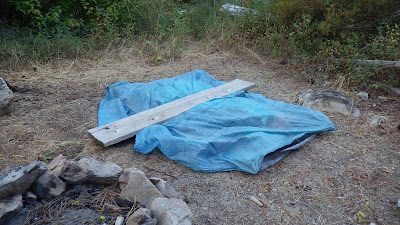| Since we were both taking our trekking poles, we used this plank to secure the tent while we went hiking. |