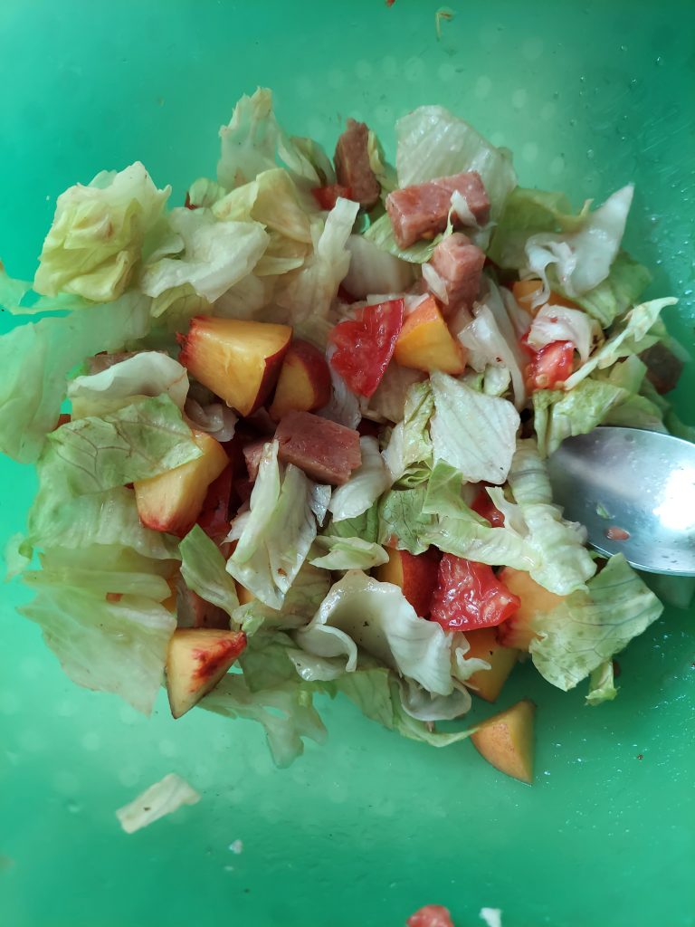 I had another Spam salad for dinner. If I want another, I’ll need to get more lettuce. I’m finding the combination of Spam and lettuce to be quite delightful. Ambrose was the one who introduced me to Spam. I remember on one of our early backpacking trips, he gave me Spam mixed with a bullion cube to warm me up. It was the one of the yummiest soups I’ve ever had.