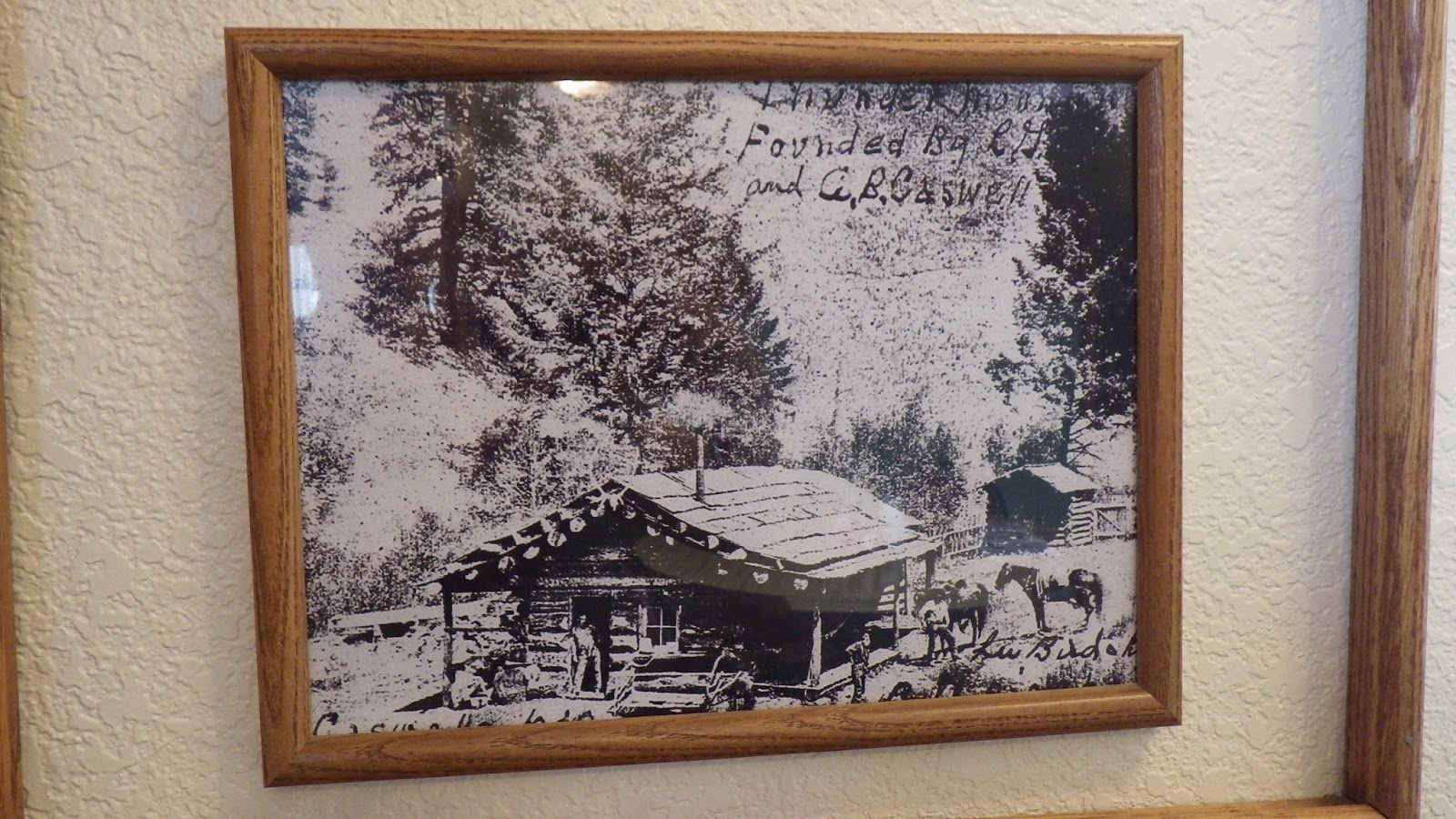 “Thunder Mountain Founded by L. G. and A. B. Caswell” |
