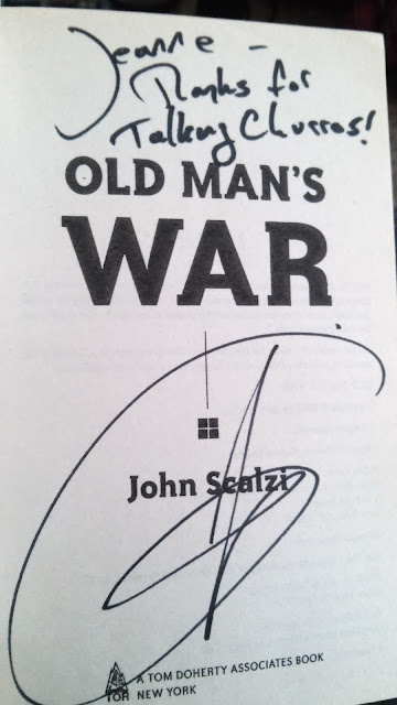 This question gave him something to use for personalizing my book, and I now am the proud owner of a copy of Old Man’s War inscribed thusly: