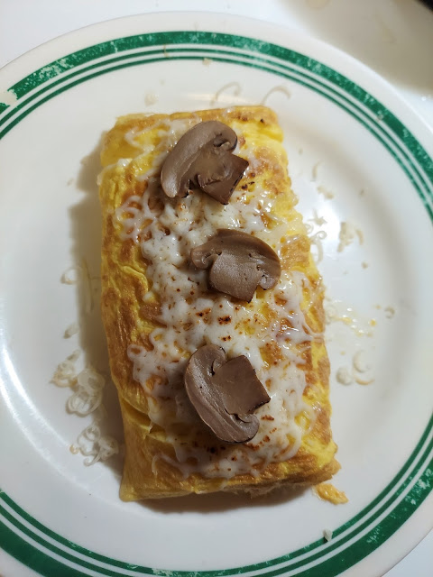 Now, I’ve been making omelets for my husband for a while now, and I haven’t before received that level of praise for one. I’m going to bet here that a good part of it is that I catered to his tastes by using mushrooms. Although, I have cooked mushroom omelets before and not gotten that compliment – even with morels that we gathered ourselves!