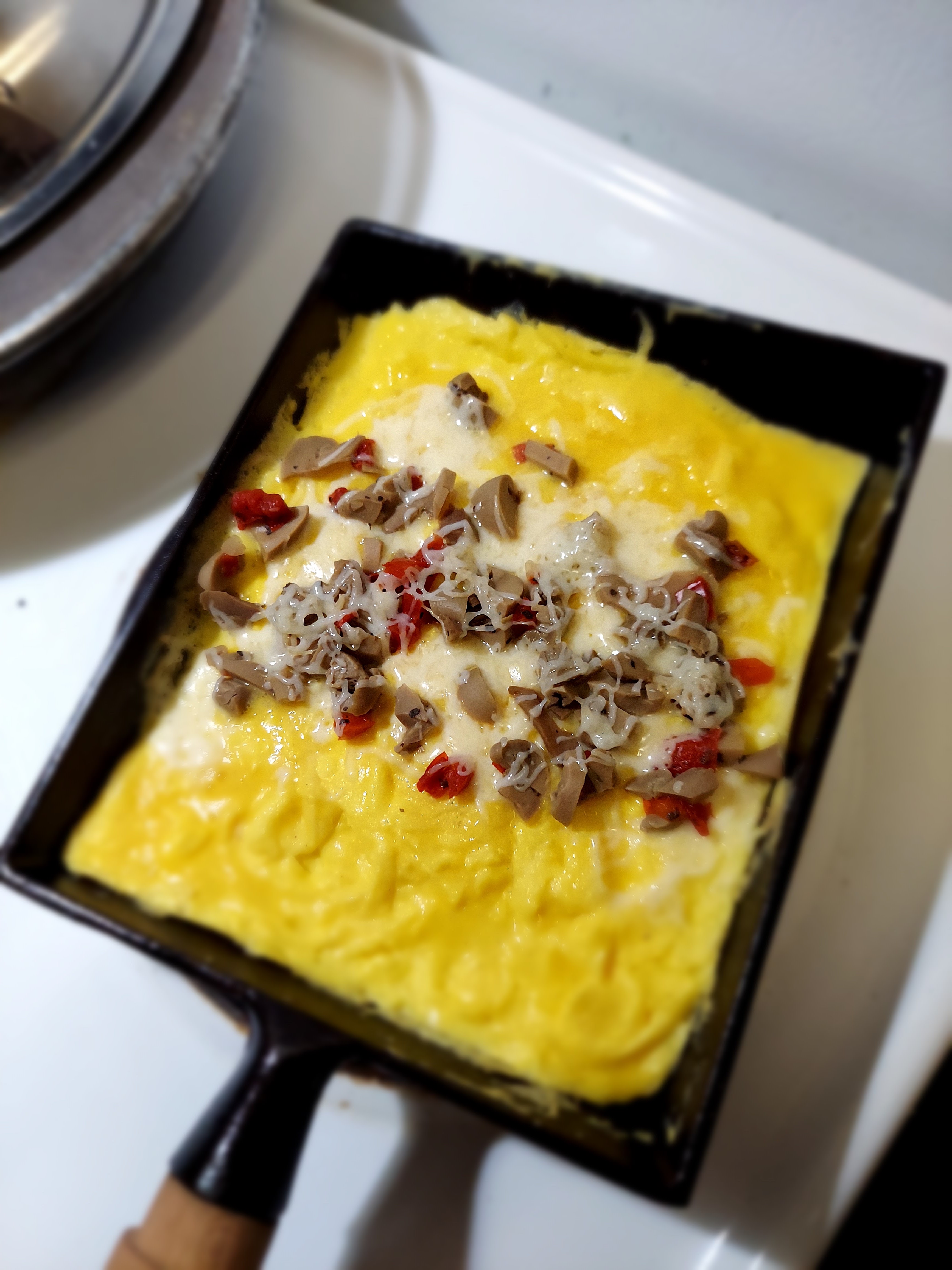 In fact, the omelet I made had almost all the ingredients coming from the same place – Old Fashioned Fruit and Veg on Broadway. The eggs came from there, as well as the smoked mozzarella-style cheese, and, the star ingredient, marinated mushrooms. It was just the butter that did not come from there.