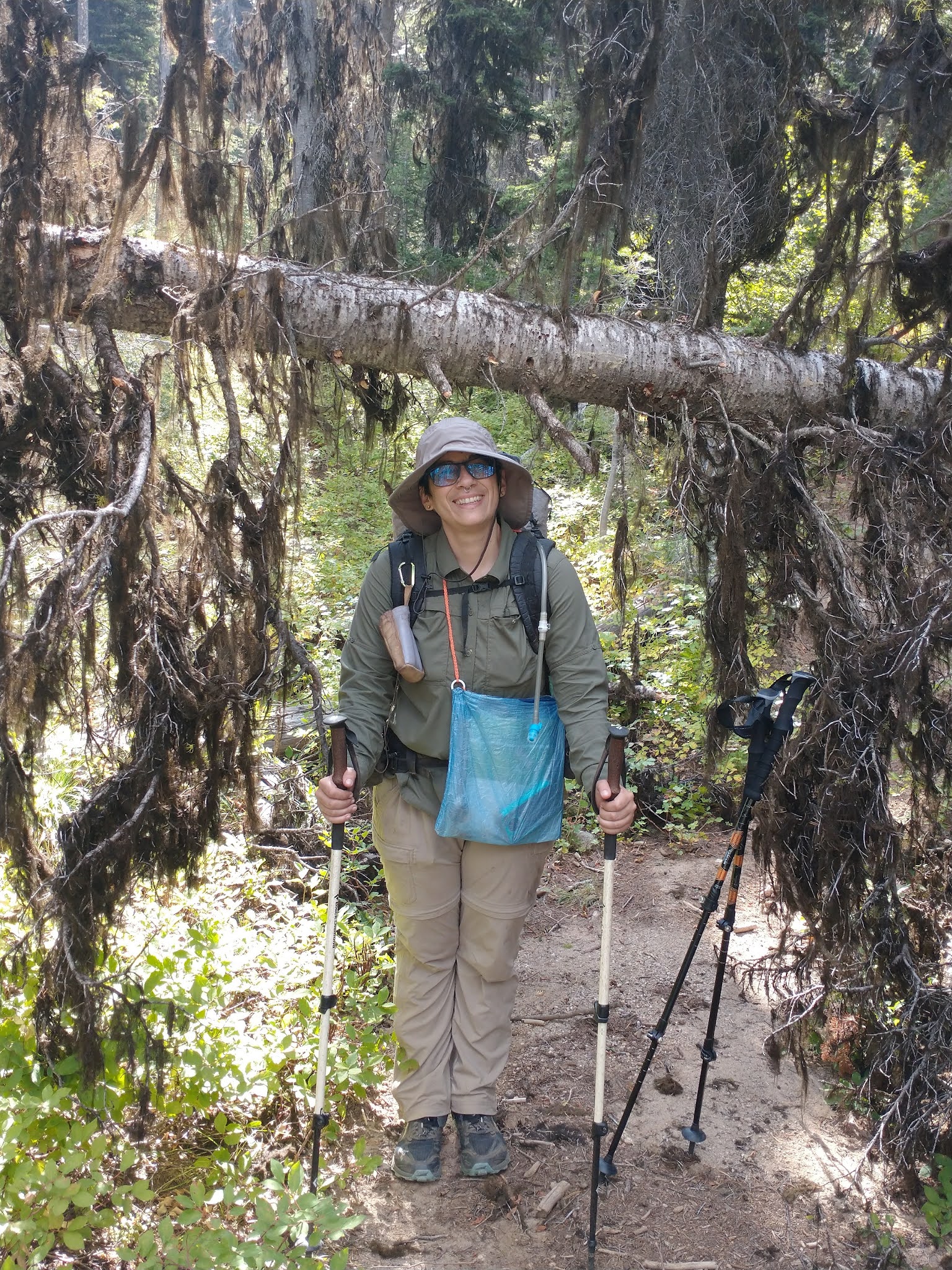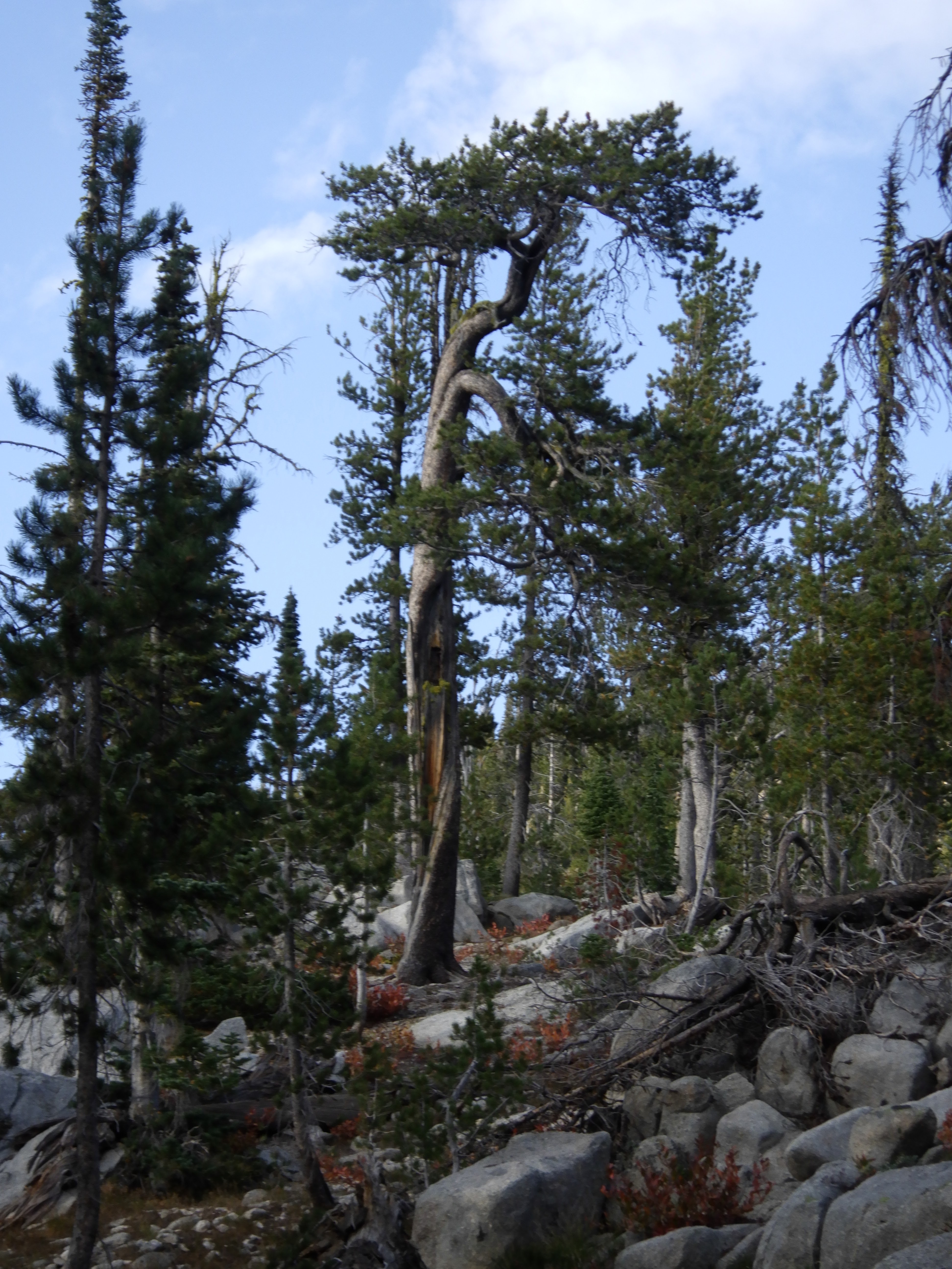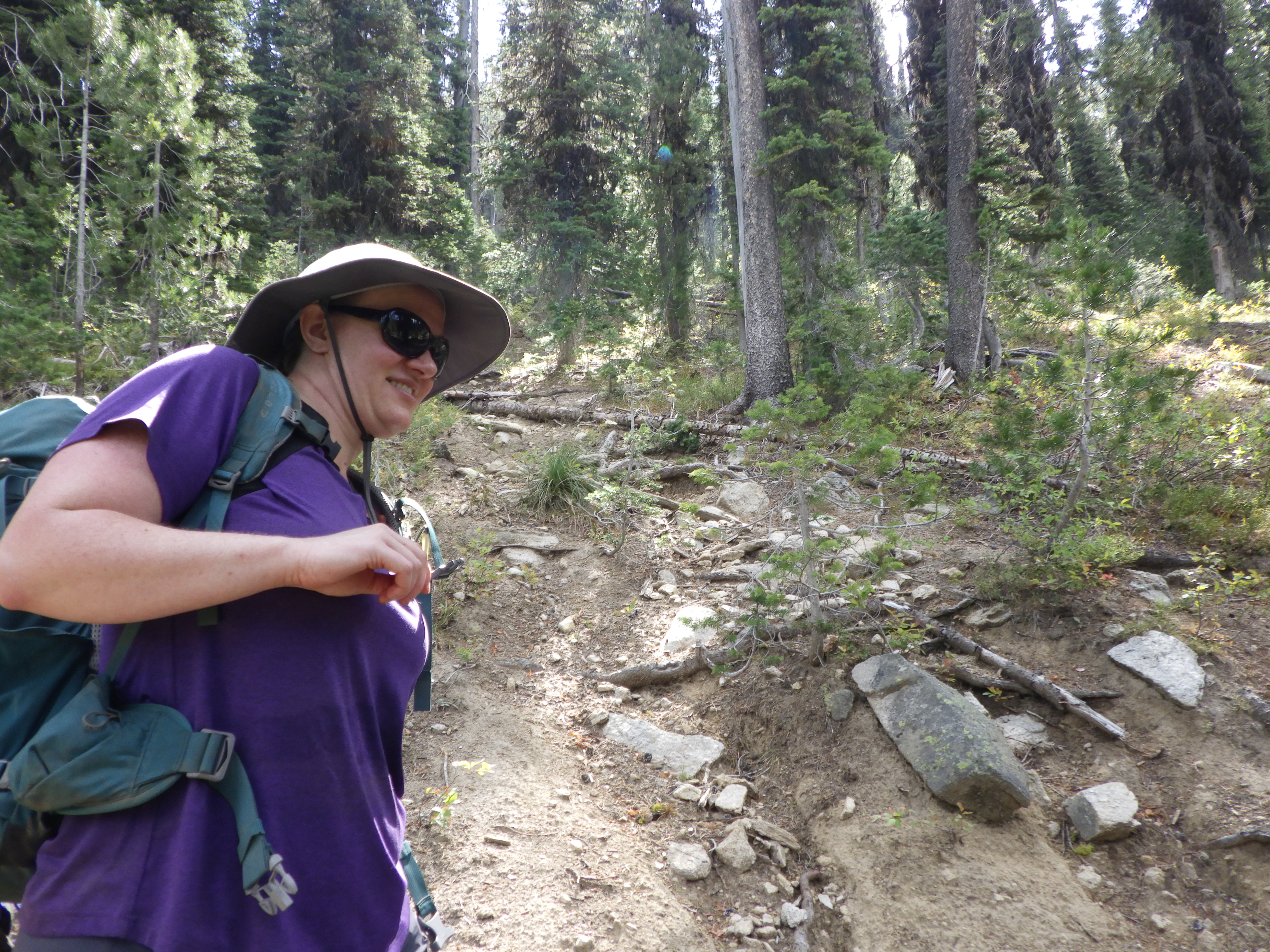 After the crossing, the trail climbs. A lot. It’s got a bit of variety, but mostly it’s up. There were switchbacks and ramps and a few large downed trees that required upward go arounds. I saw quite a few huckleberry bushes, but we were far too late in the season to see any berries. We stopped every 20 minutes or so for a brief break, and I made sure to give us bigger breaks every now and again as well.