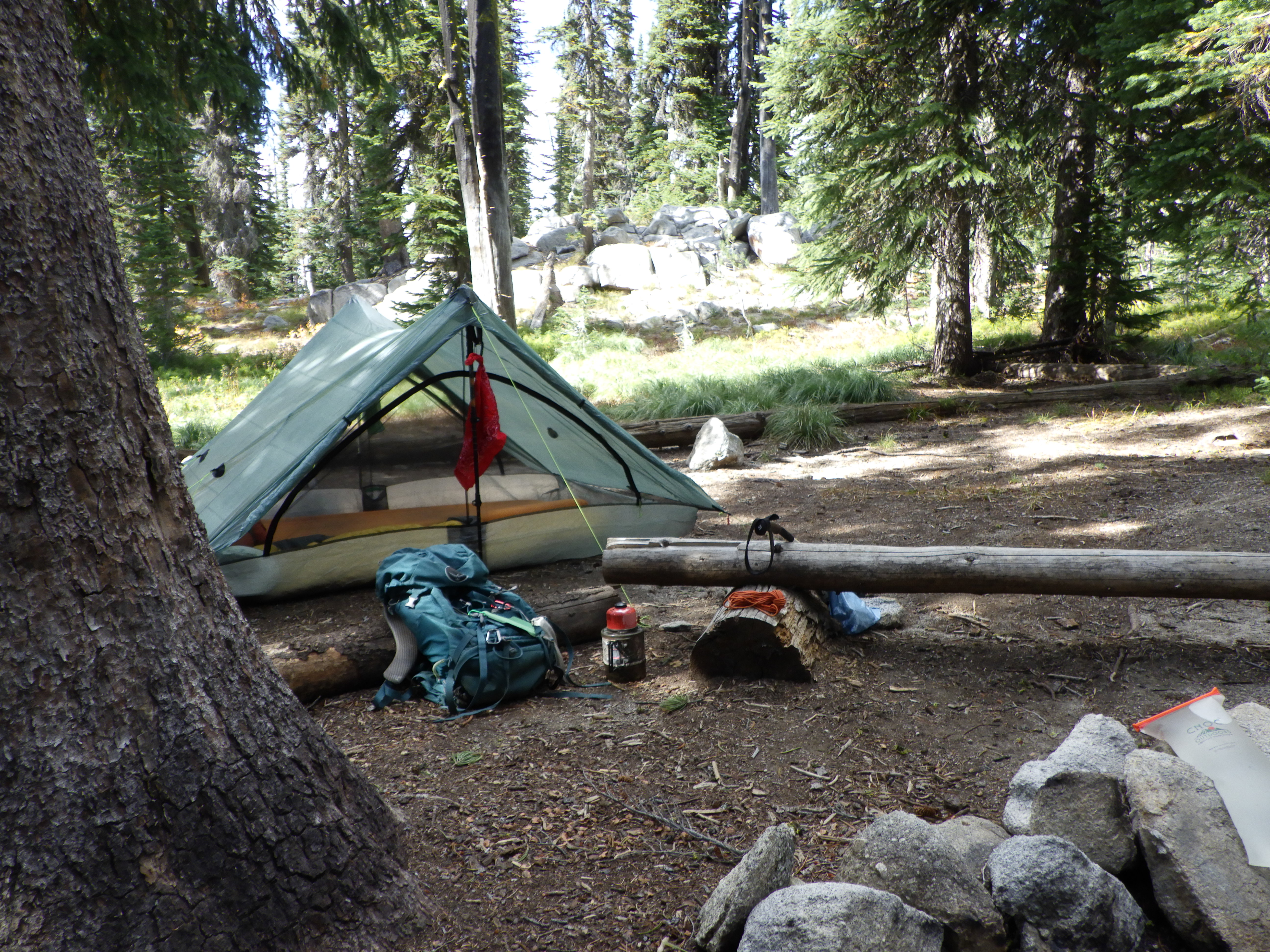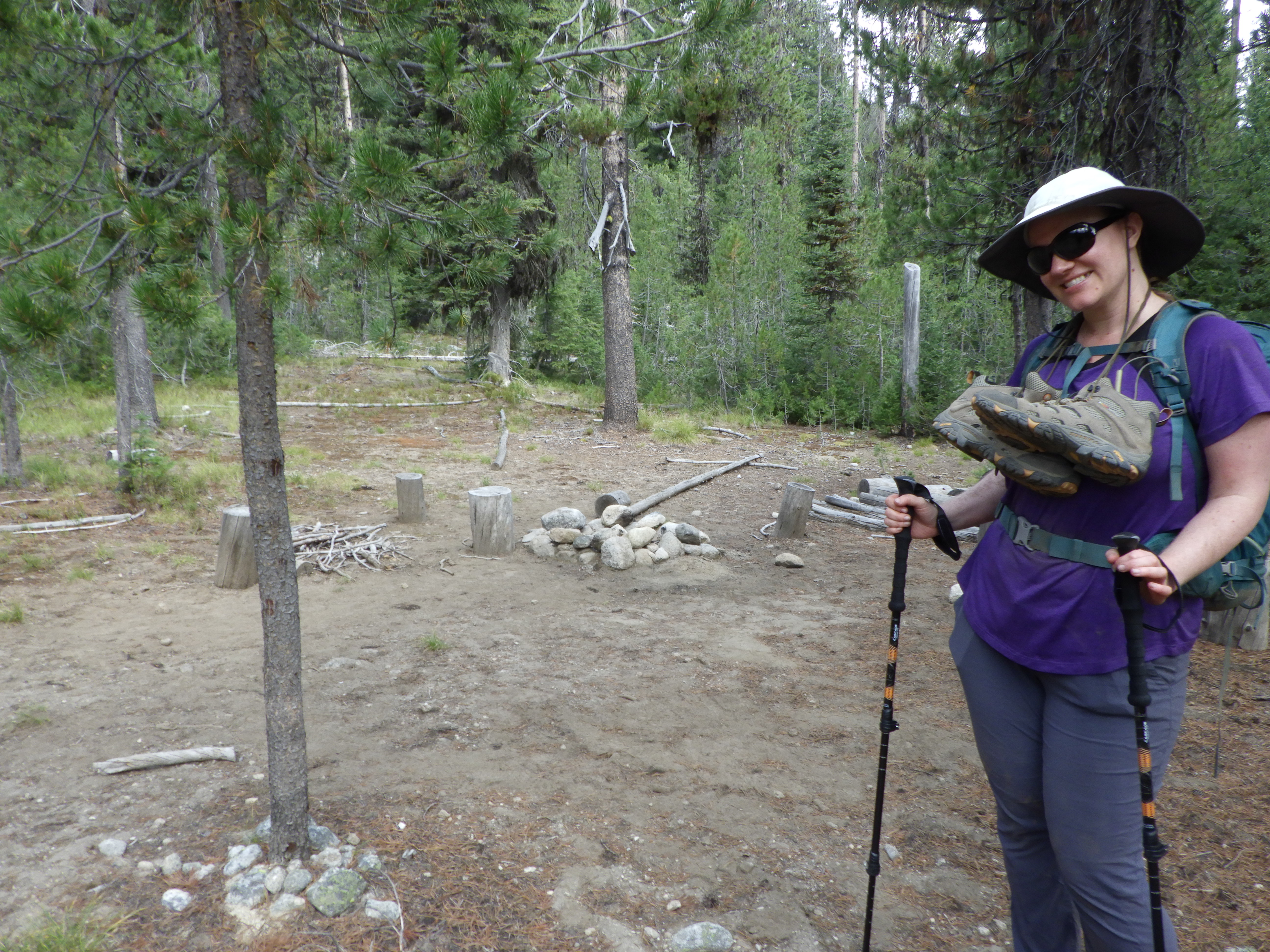 It’s a little gem of a lake, complete with a namesake stump sticking out of it on one end. And there was a nice campsite ready for us, complete with logs to sit on around a fire ring. Perfect place for cooking!