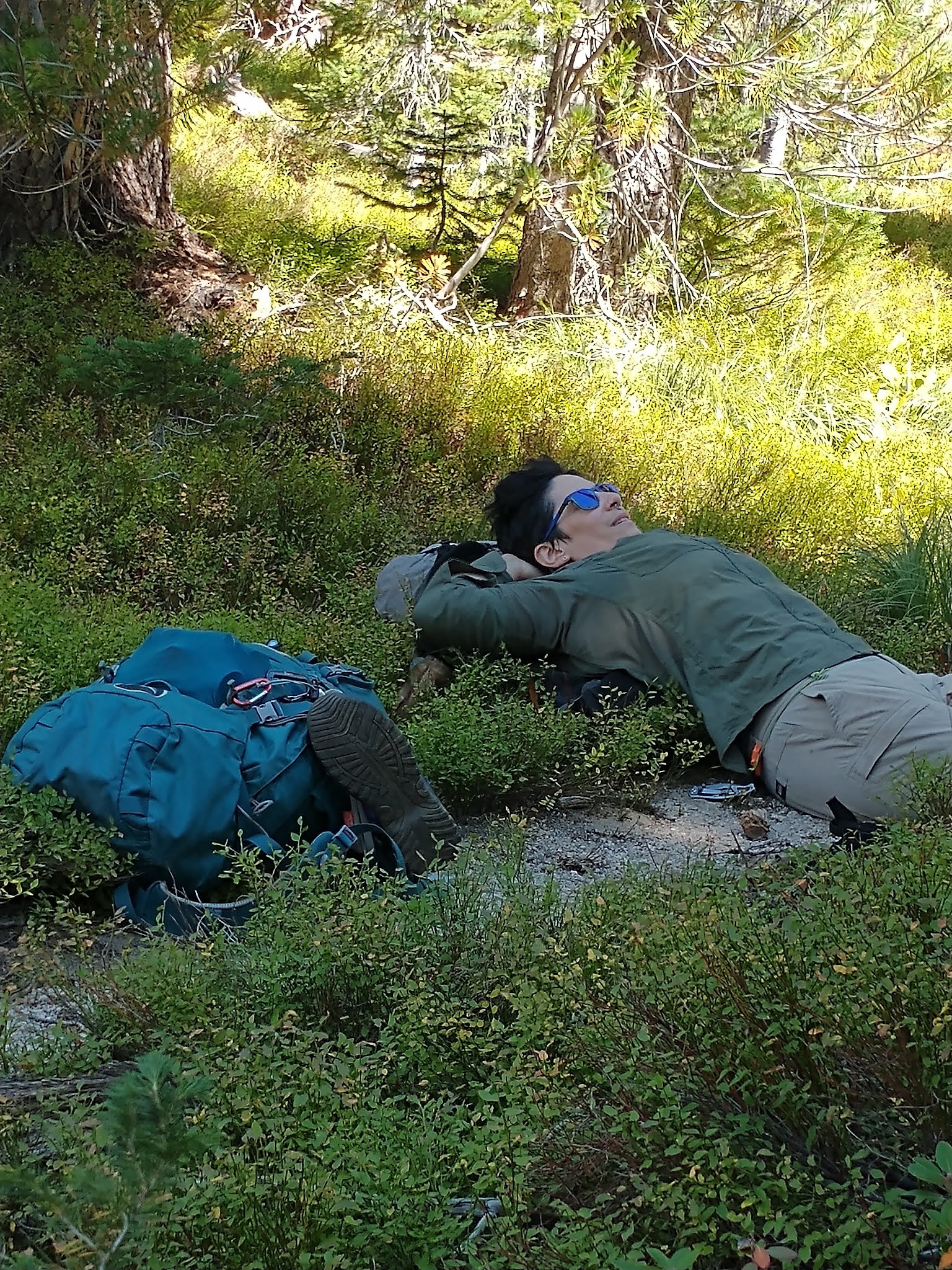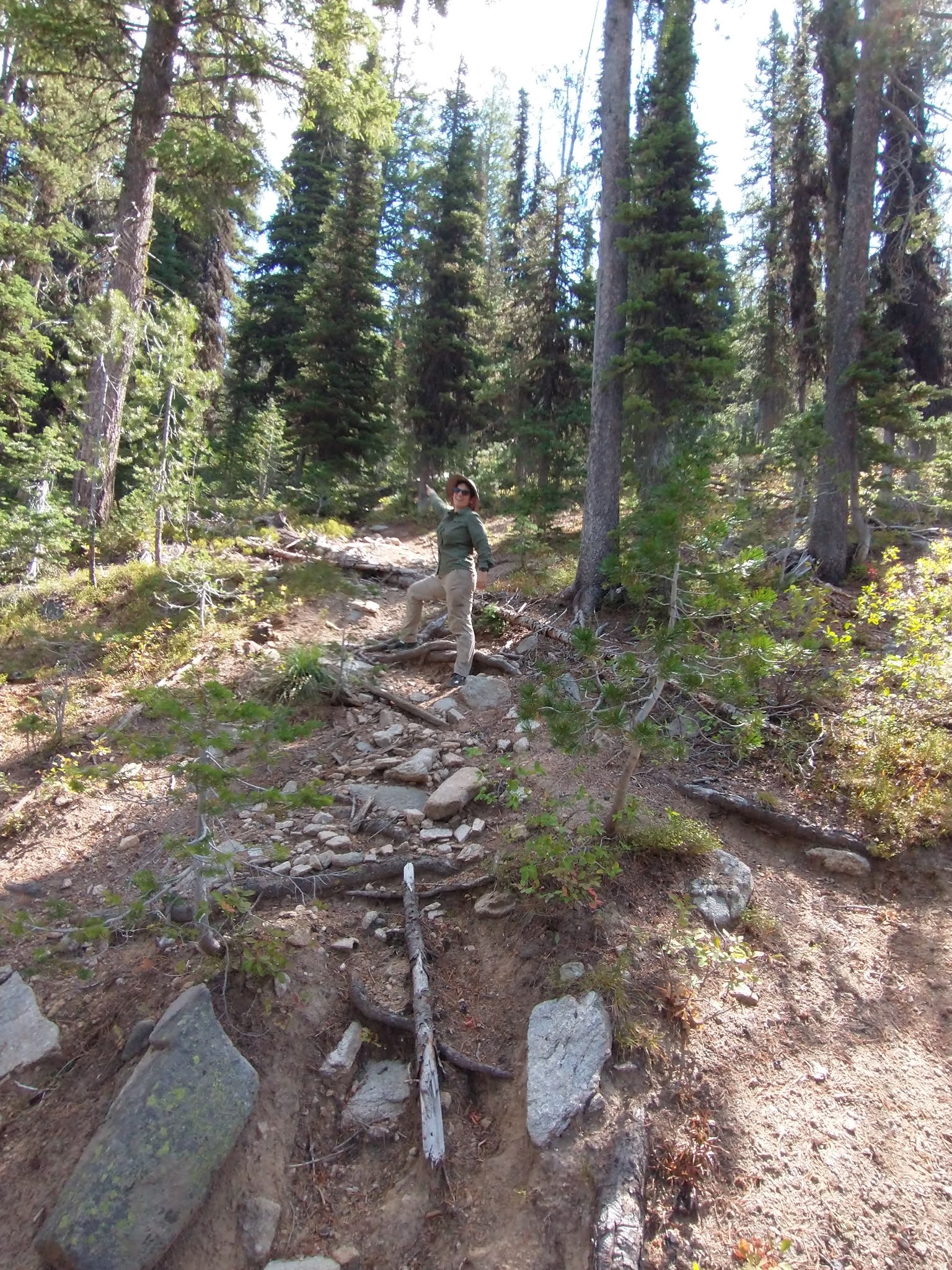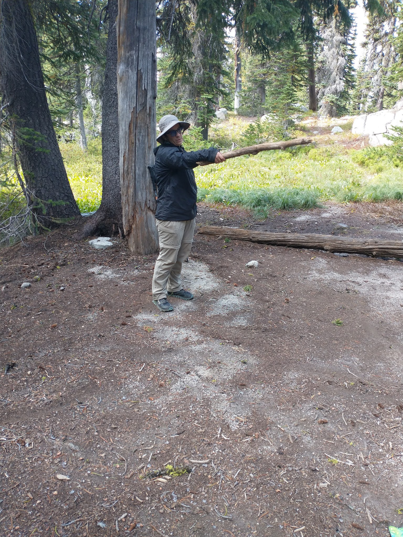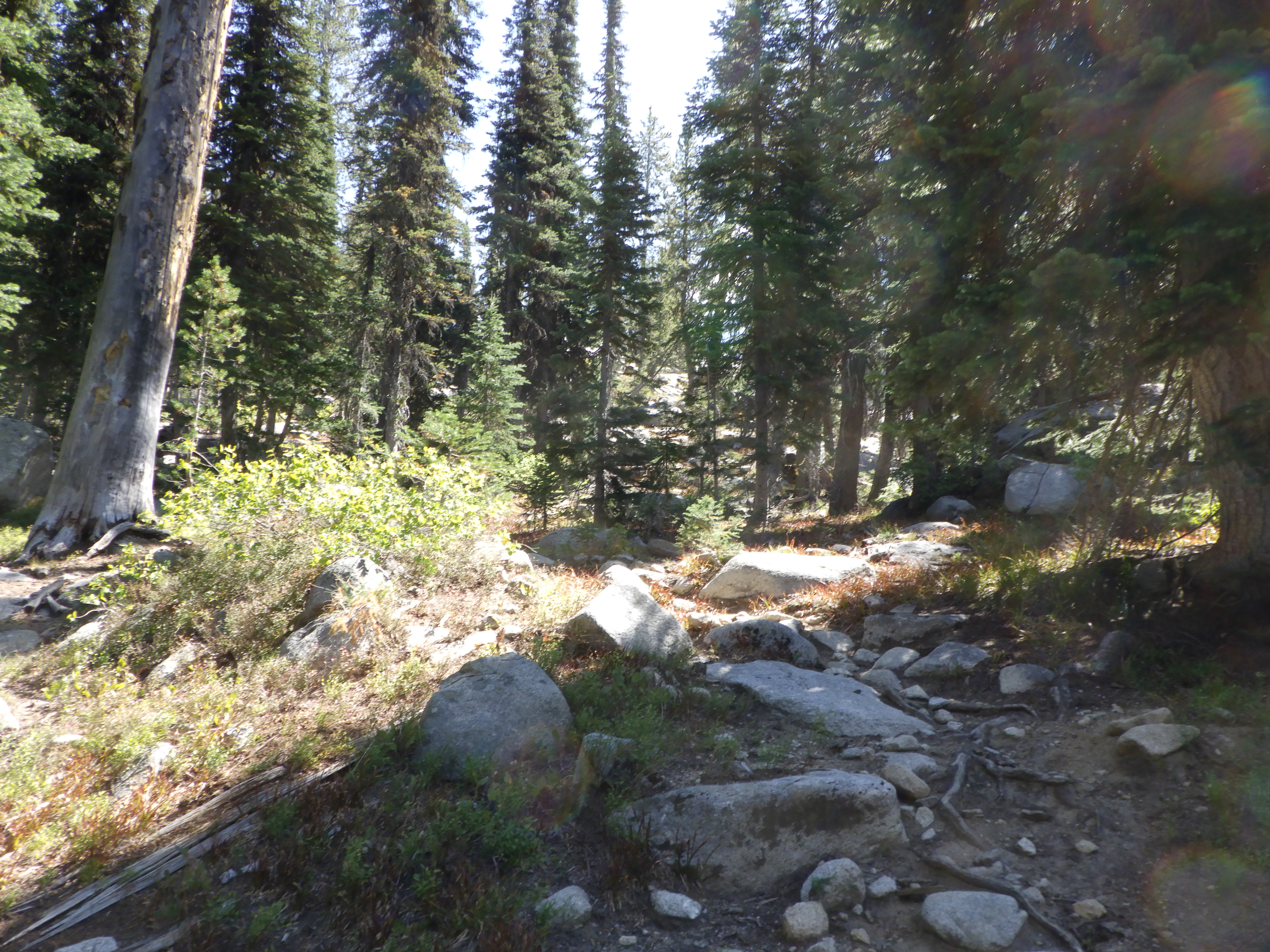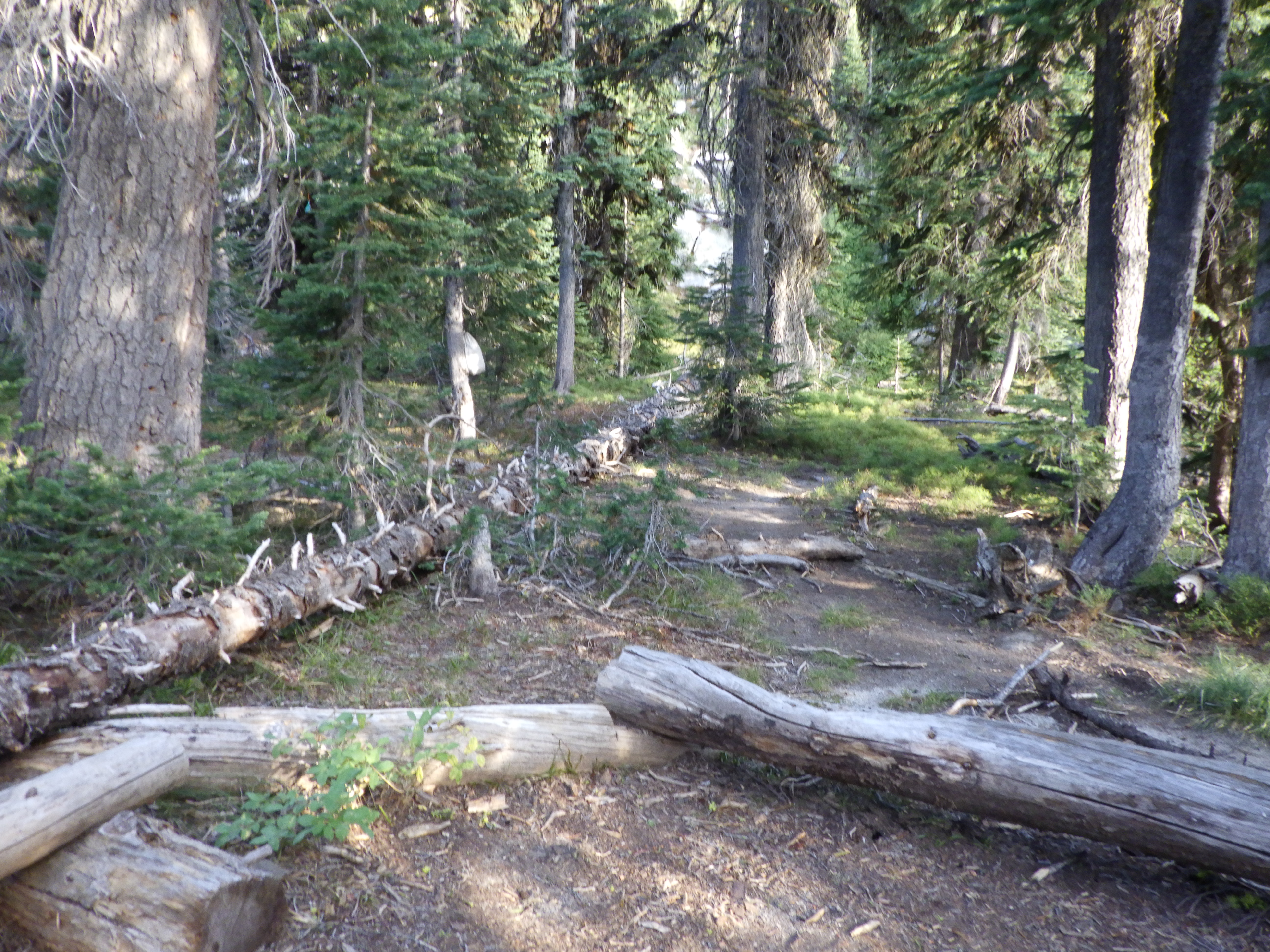 I made the ‘not more than 2 miles’ determination by looking at my picture of the sign from the last trail junction, which put the Needles Summit at 4 miles. Needles Summit is just past Stump Lake, and I could see by my map that we were closer to Stump Lake than that junction, hence it must be less than 2 miles.