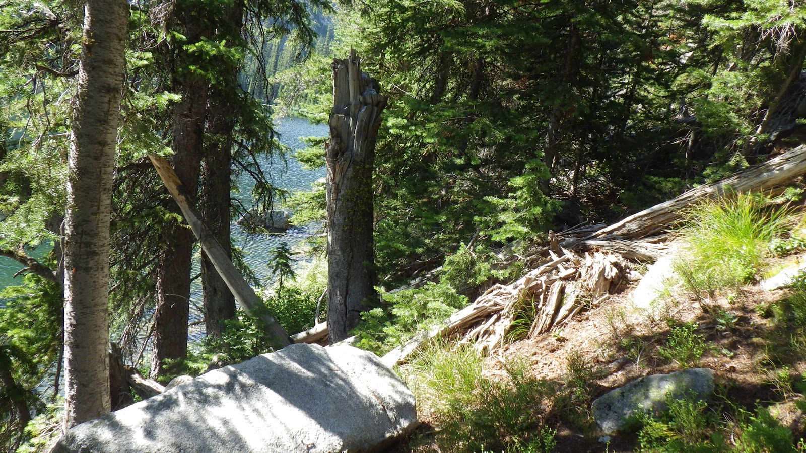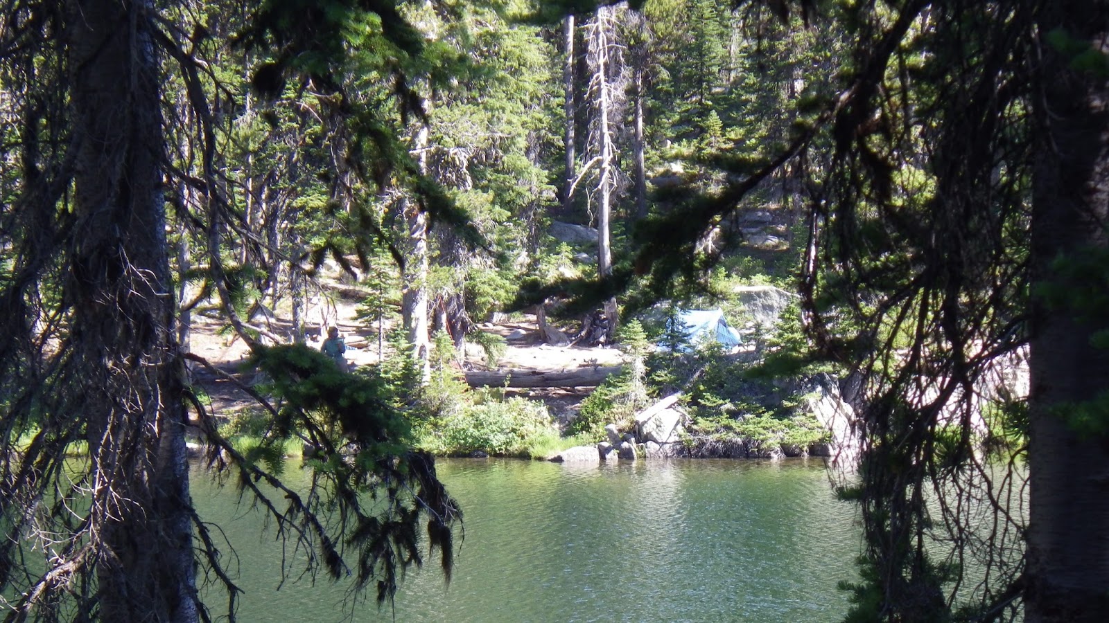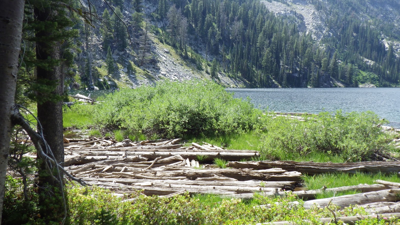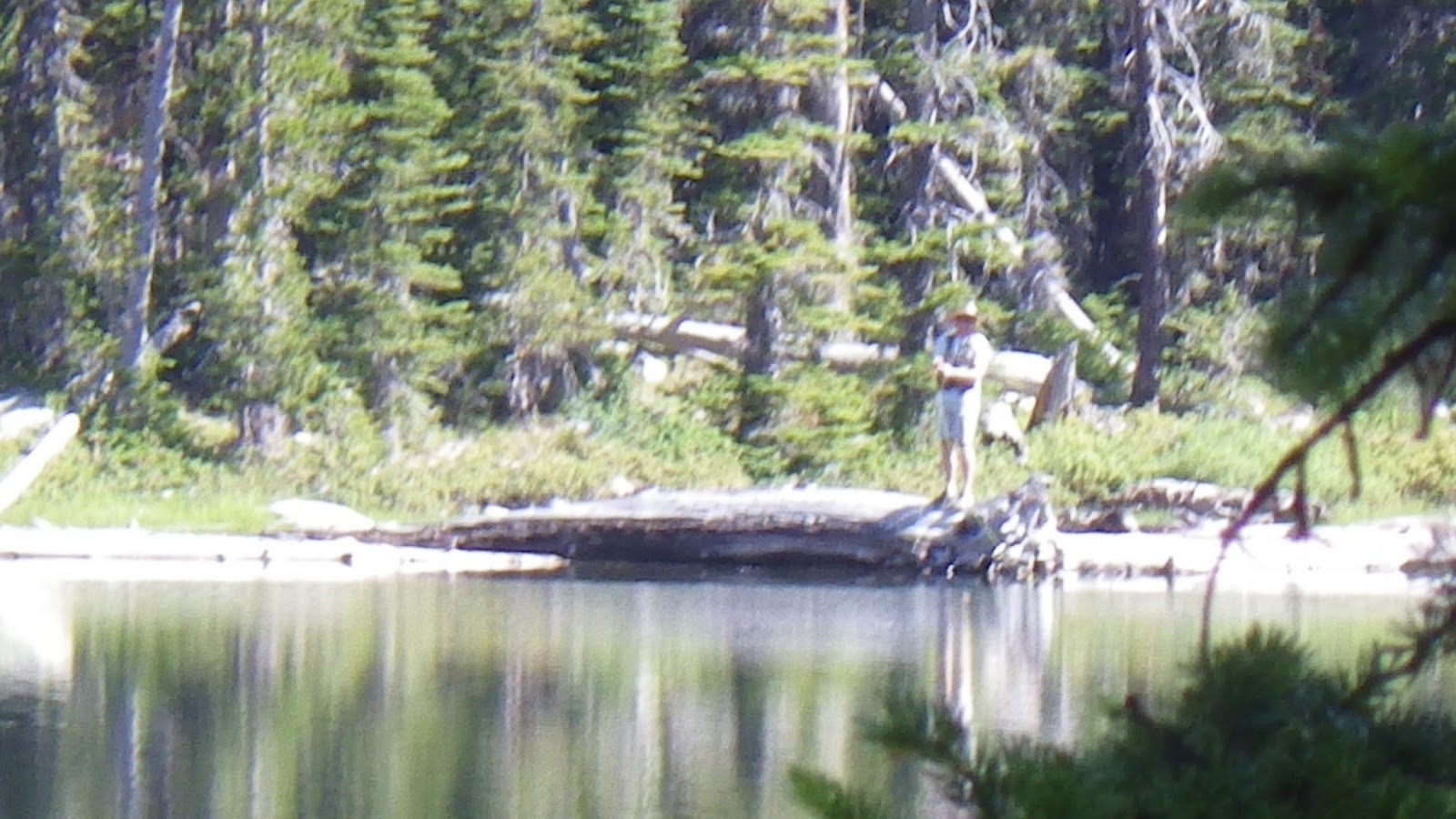 As I headed back, I saw the couple. They were all packed up and heading out. So I, in a rare burst of sociability, scampered up to them and we chatted a bit. They were also from Boise, and had come up to the lake by way of the outlet. They asked if there was a trail by where we were camped and I said there was. They had come up to escape the craziness of the 4th, which was also one of our reasons for coming. I wasn’t sure why they were leaving so soon, but it might have had something to do with the question the guy asked me the night before – “have you guys run out of bug spray yet?” At the time I thought it was facetious, but if they didn’t have some heavy duty DEET, they probably had run out.
