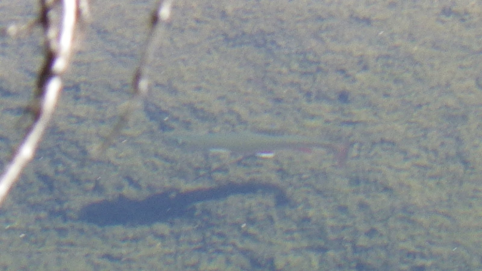I made my way by switching from game trail to game trail, depending on which was easiest or most open. 2 to 3 of them seemed to exist at any given point, on different levels. But all too soon I reached a point that was too iffy to go past. The high trail edged right under some boulders. The low and mid were both covered with fallen trees. I wasn’t equipped for that. So I turned back. Still, there was no hurry, so I stopped a few times to stand on rocks just above the water and watch the fish.