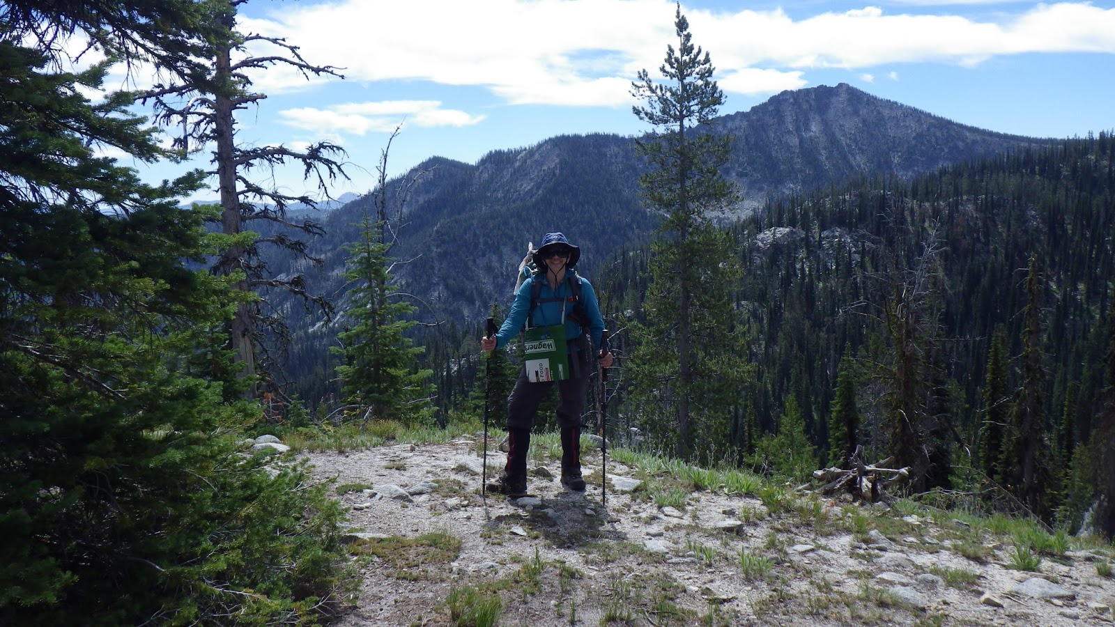 And then, we moved uphill to another gentle ridge where Ambrose took pictures of me against the backdrop of the valley below. I saw more huckleberry bushes as we hiked, but none of them were ripe.