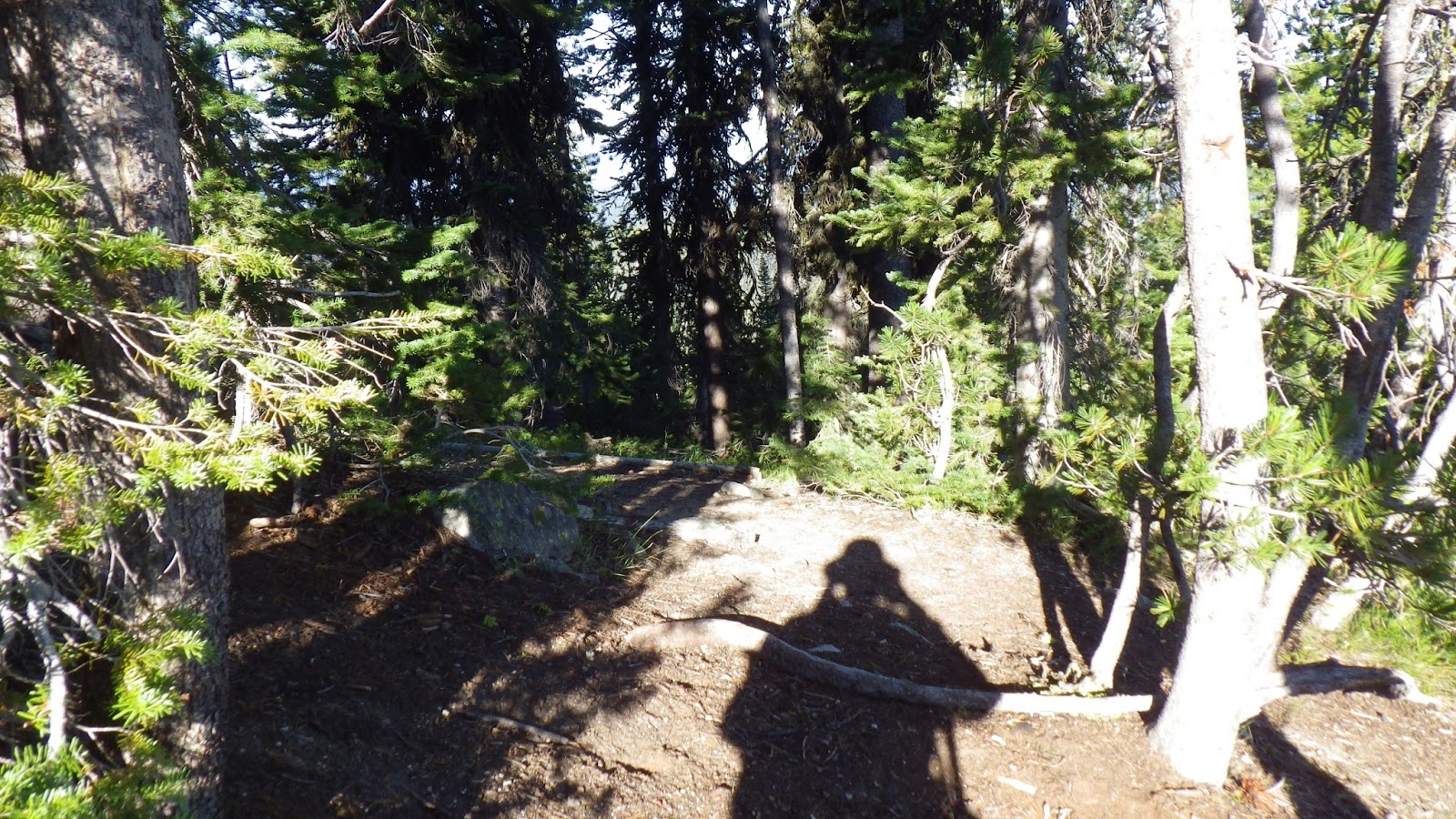 I actually got a little bit lost going down the ridge, but I kept to the general direction and rejoined the no trail before getting too far off course. The steepness of the trail prevented me from going full speed, but I moved at a good pace for the terrain. My mismatched trekking poles held me up as well as a matched pair would have, though I still didn’t like the foam grip.