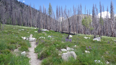 The wildflowers were in full bloom, dotting the landscape with yellows and blues and purples, reds and pinks and whites. That’s one advantage of hiking out earlier in the season. I know in a couple months the greens will be yellower and the flowers mostly gone.