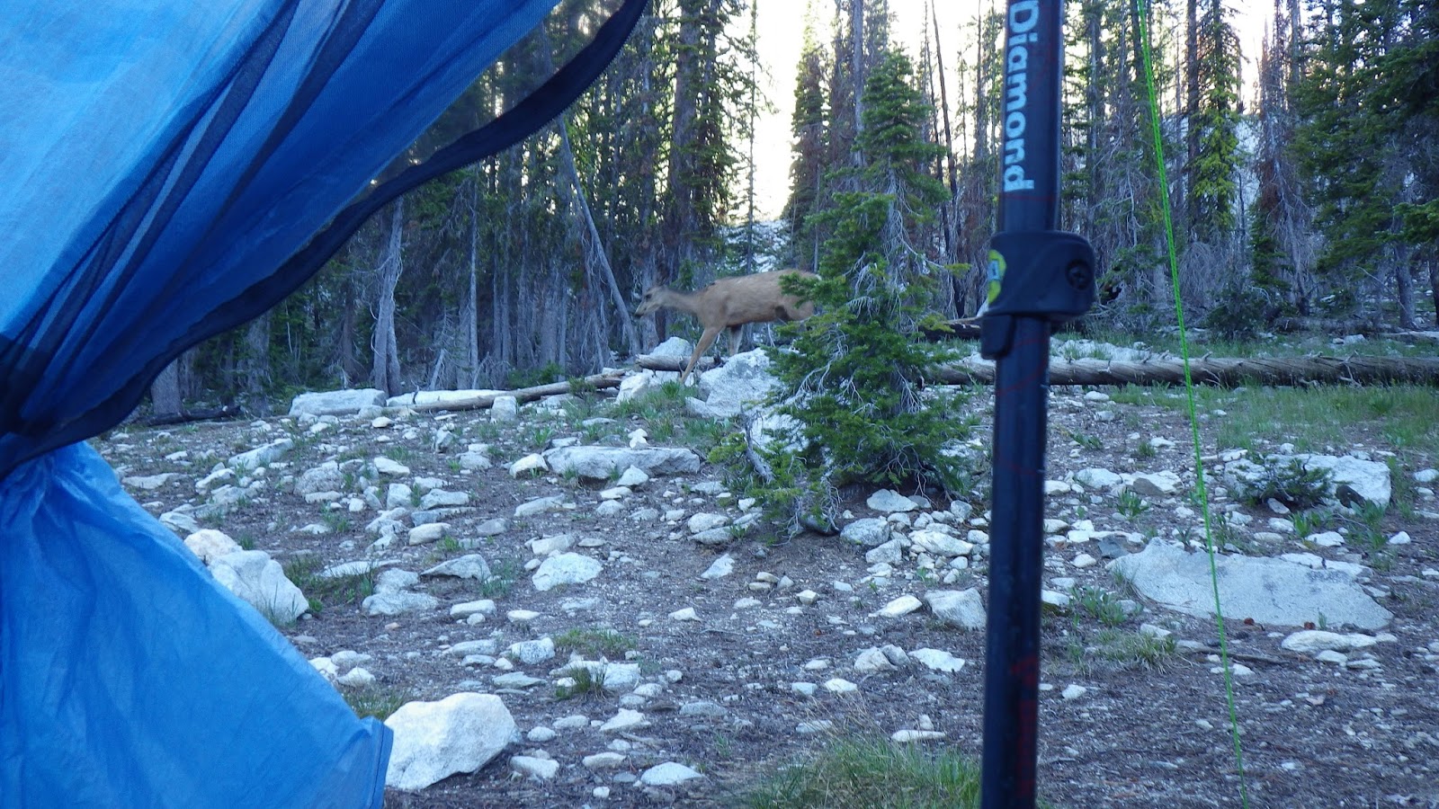 I kept that thought to myself while we ate breakfast and packed up our camp. Breakfast was granola. I had hot water in mine, even though it didn’t have any milk powder like Ambrose’s did. The hot water still made the granola warm and soft, which was nice. The same deer from yesterday wandered around outside our tent, getting closer and closer until she settled at a spot that I still thought was incredibly close.