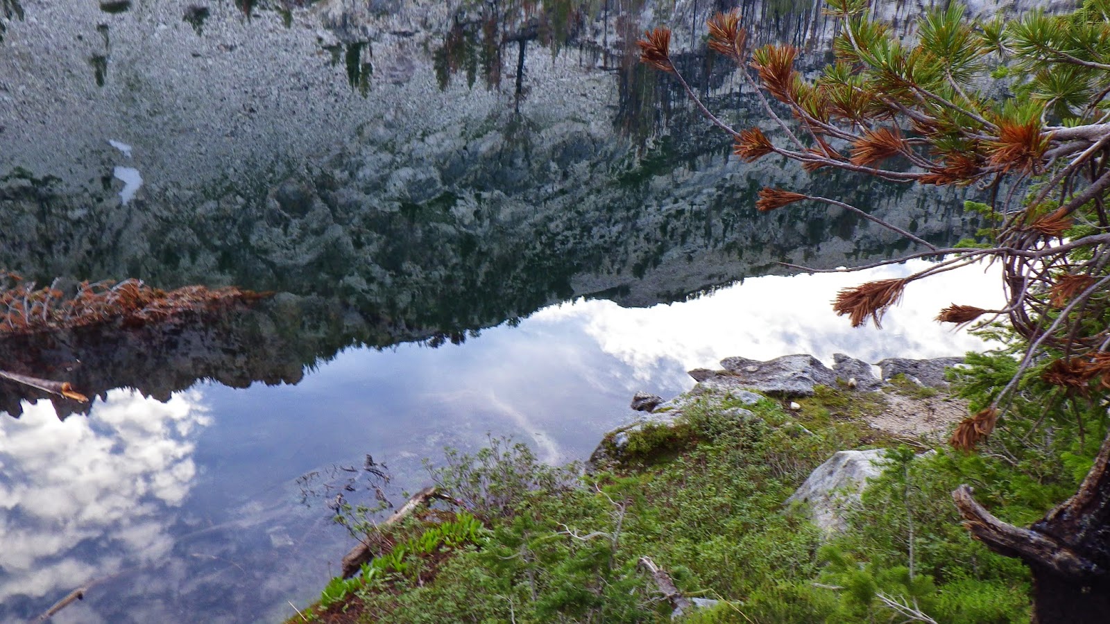 I got to sleep late the next day. Of course, sleeping late out there means something like 7:30am instead of 5:30. I was actually up before the sun crested into Browns Lake – without any external prompting, it’s amazing. It was my day to cook, so I set to making coffee and breakfast. Then Ambrose and I set off for an exploratory day hike. We wanted to get to the unnamed lake above Browns at least, and maybe climb the peak.