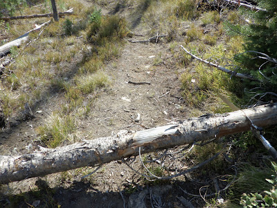 The next section of trail was rolling, ups and downs, minor stream crossings and then a junction. We took a left at the junction and the trail began to descend. On that descent were several sections that were just crying out for a water bar to keep them from being washed away, so once we got to a flat spot a stop was called.