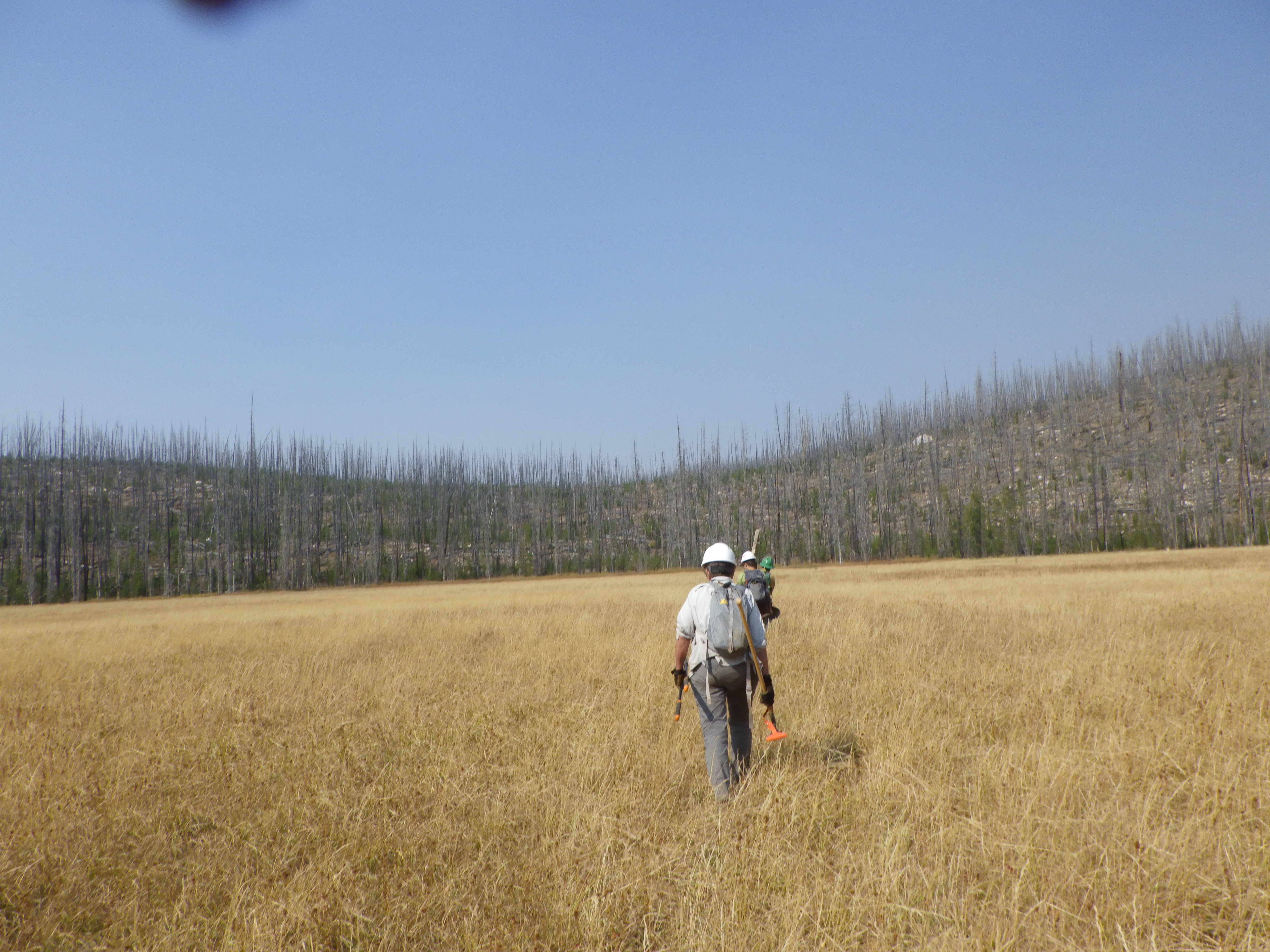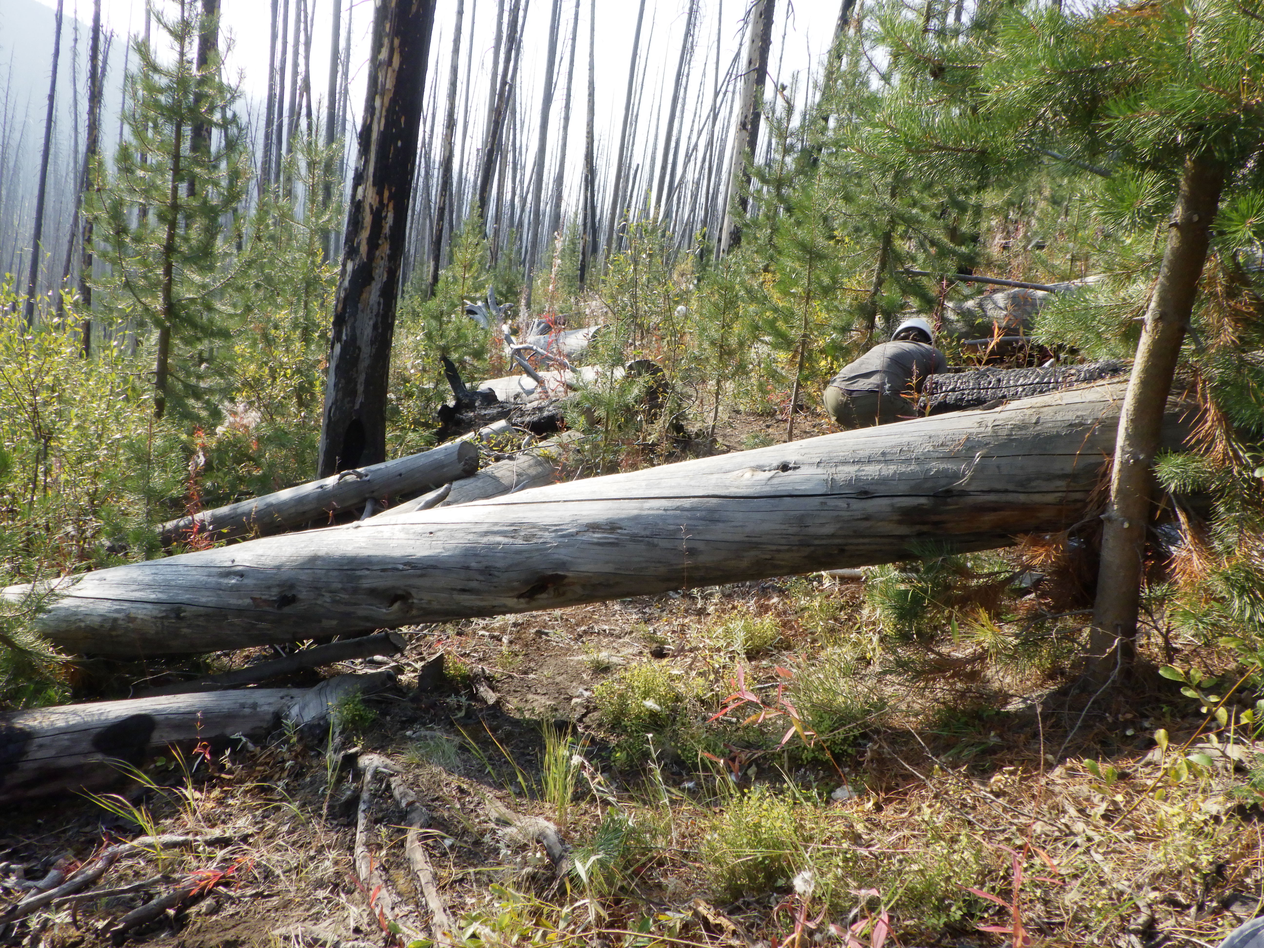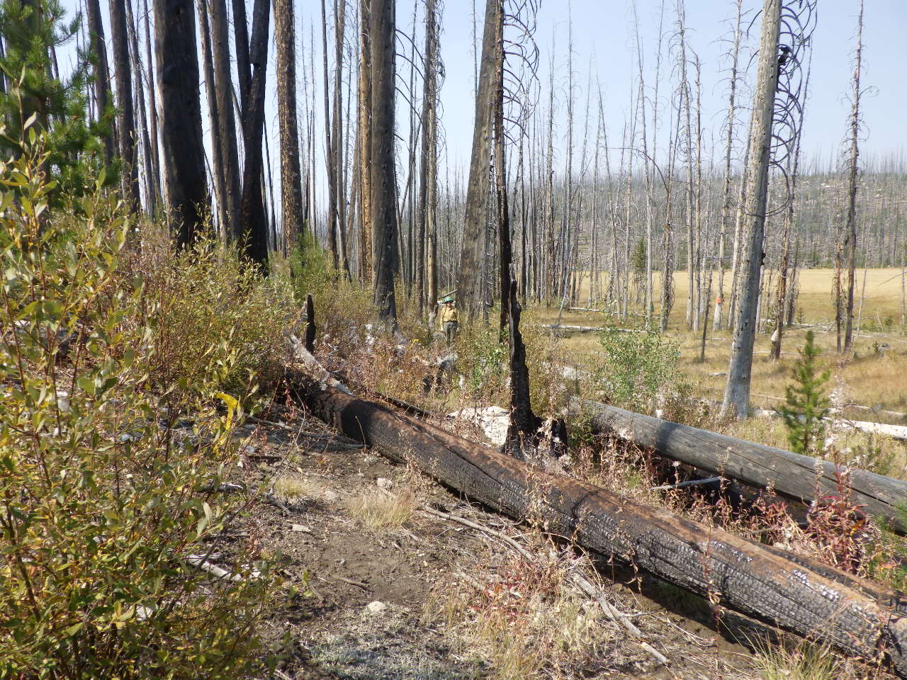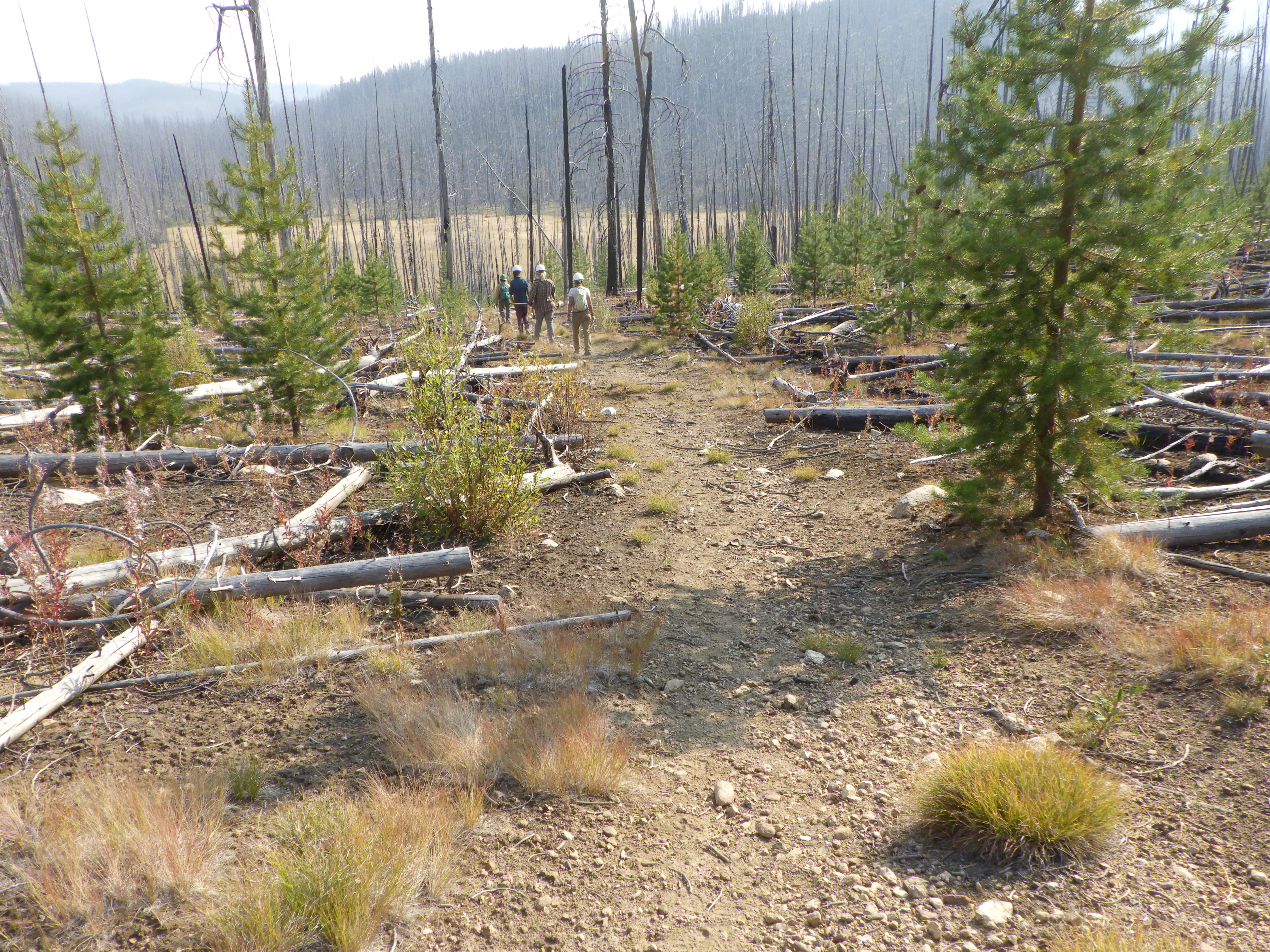 Near the meadow, we completely reworked the trail. Essentially, we created trail where none was before, because there was no indication remaining of where the trail had been originally, before the fire. One woman actually had a GPS with the old map’s route, but we couldn’t overlay that onto the current terrain.