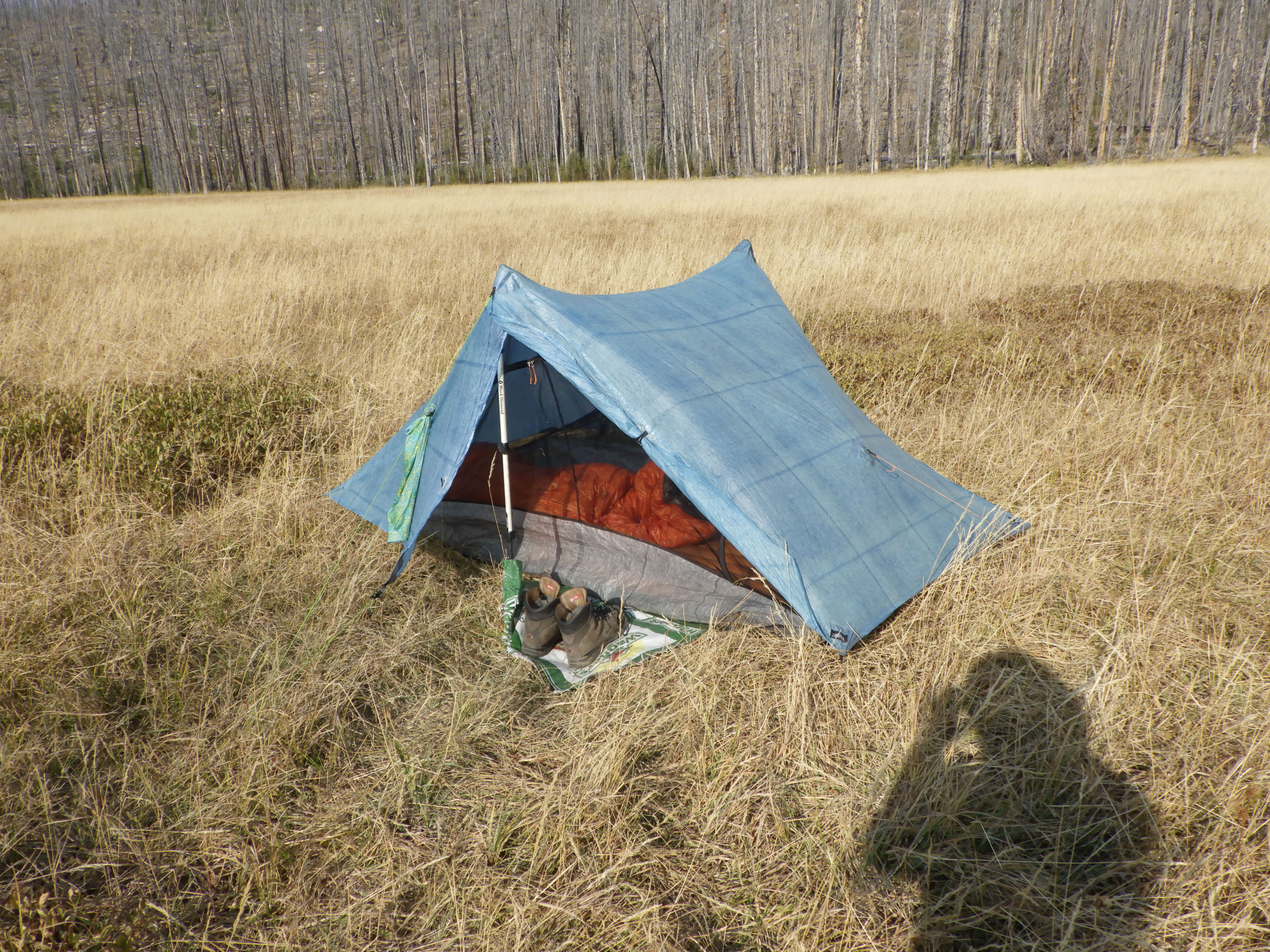 I repitched my tent to make the bathtub higher, in the hopes of being warmer in the night.