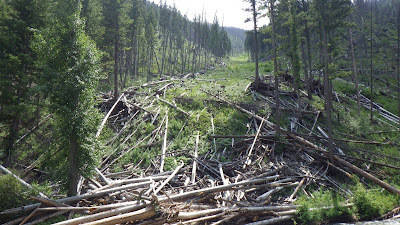 There were so many trees fallen on this slope; Ambrose thinks it was from an avalanche. |