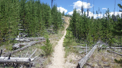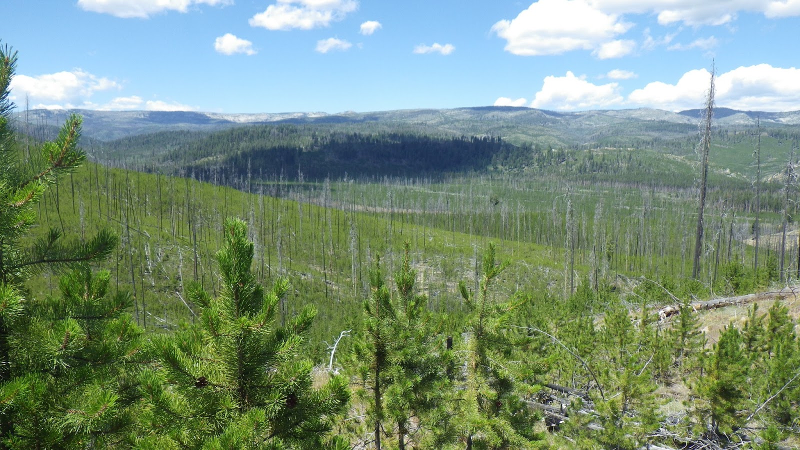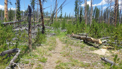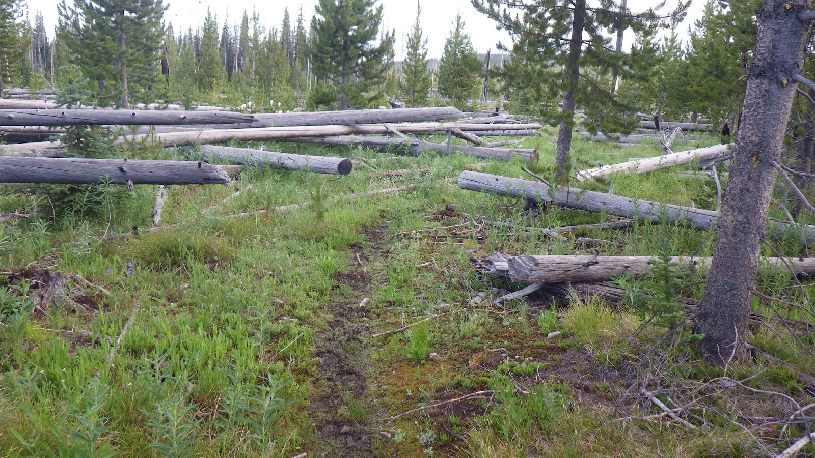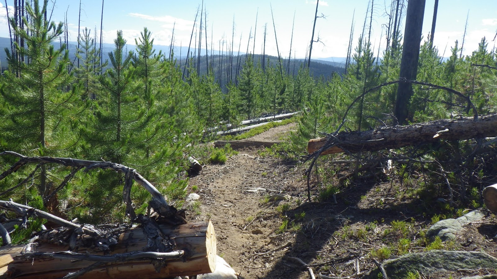 | The fallen logs are a legacy of an old fire, but the young trees are growing up fast. |