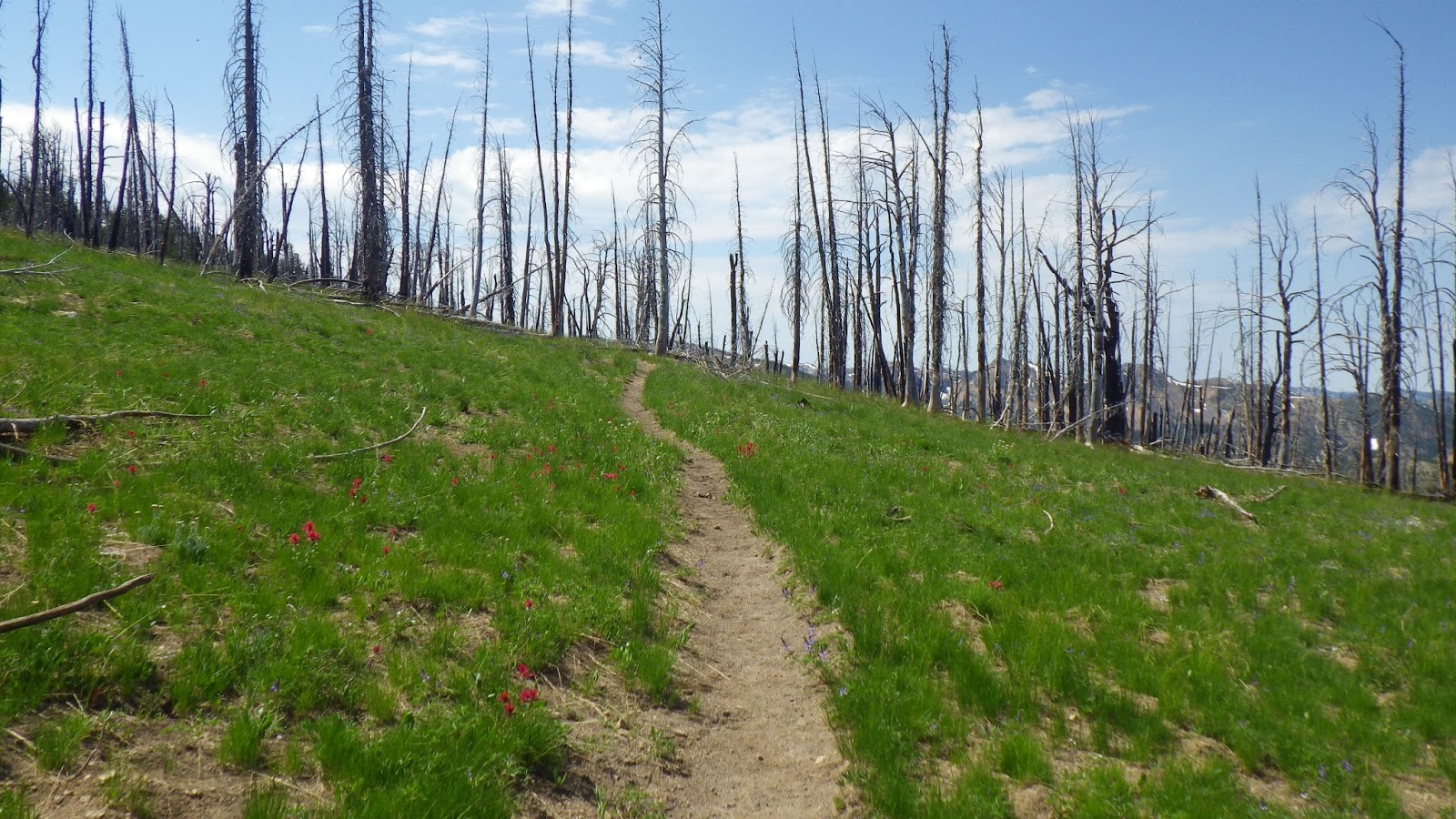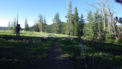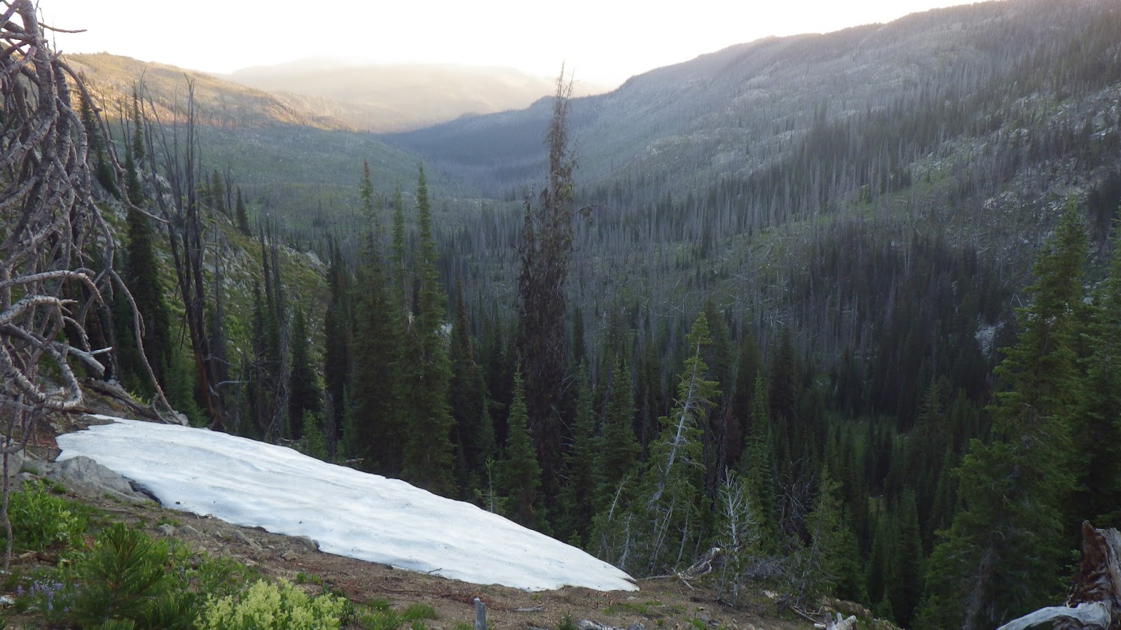 Still lots of snow patches around here, though none over the trail.