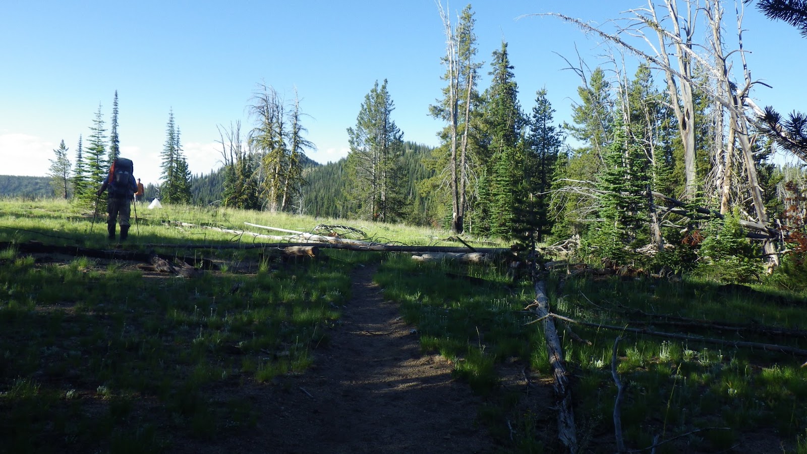 A little bit past the junction, we ran into some other backpackers. The little white triangle next to Ambrose in the picture is their tent.