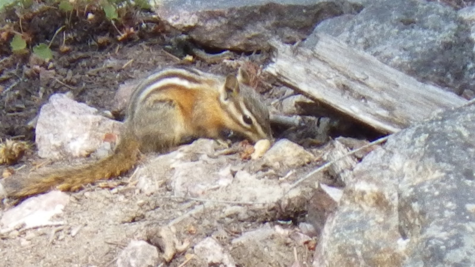 A chipmunk abruptly appeared on the tent wall above my head. I could make out its shape through the wall for just a moment as I screamed and it scrabbled off and ran for its life. Ambrose woke to hear me screaming and yelled in solidarity before asking me what was going on. He then looked out his side of the tent to see the poor creature scrambling well up the ridge to its presumed home far away from us. All that effort it took to explore us was for naught, though I bet it found a few crumbs of food the next day to scavenge after we left.