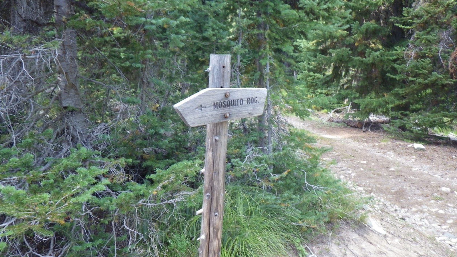 | The Mosquito Ridge sign pointing back the way I came. |
