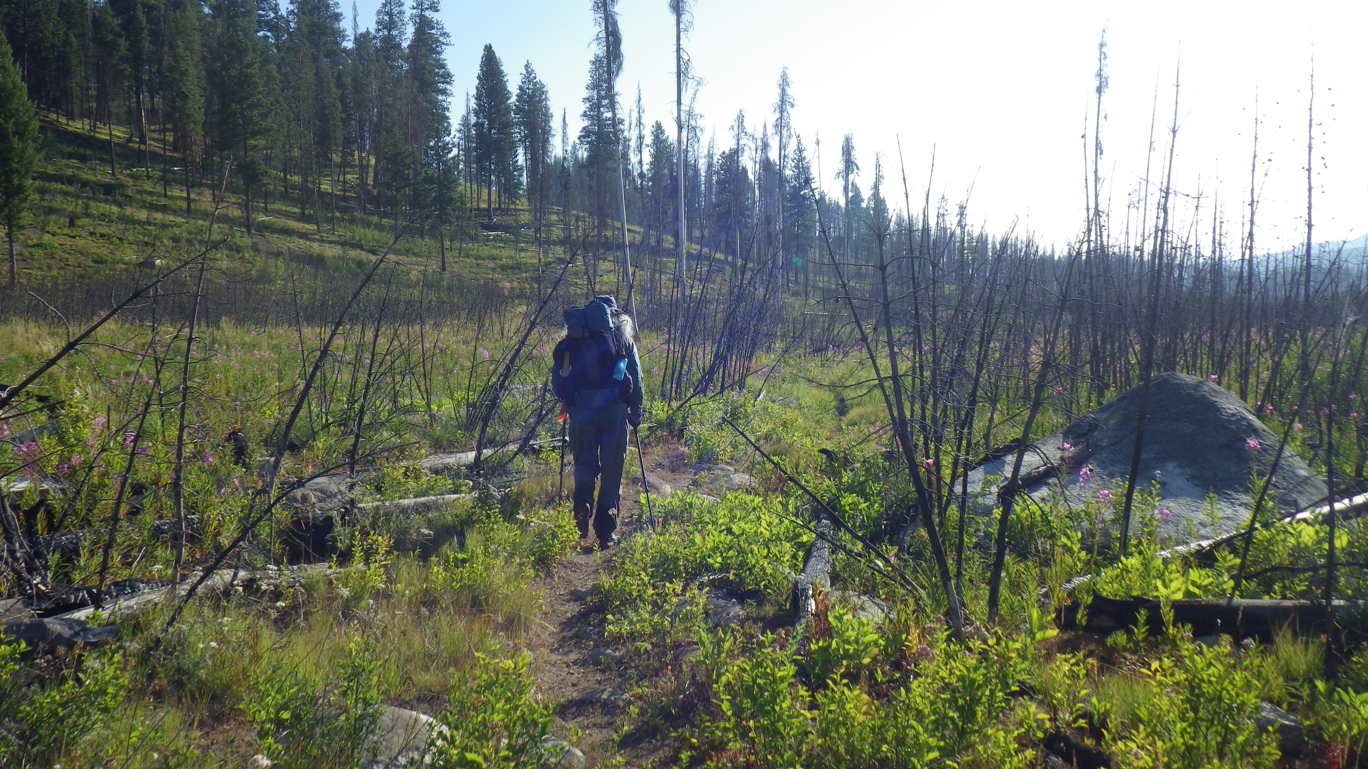 After that, we reached stands of dead trees that weren’t dead the last time we were there. At first, I thought there might have been another fire, but these trees weren’t burned. They were just dead. Had to have been some sort of blight to kill so many trees at once. And they were short, skinny trees that had hardly gotten started. I was a bit sad to see it. And not just because dead trees cast less shade.